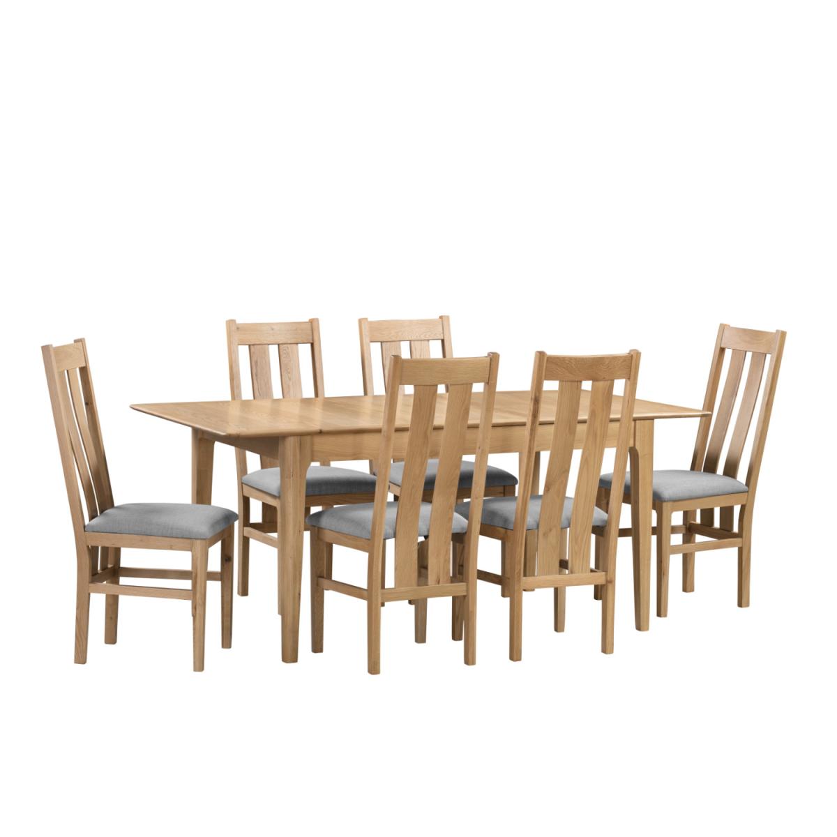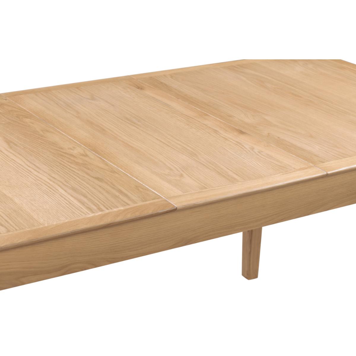 Extending from 140cm to 180cm, the Cotswold Dining Table spaciously seats up to 6 people. Crafted from solid oak and oak veneers, the Cotswold highlights the natural beauty of the wood through the grain creating a traditional style with a clean and simple design. Pair with the Cotswold Dining Chairs for an eye-catching dining set. Part of the Julian Bowen Cotswold Dining and Occasional Collection.