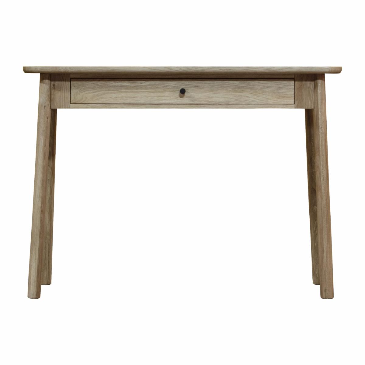 A solid, classic style with a slightly rustic look, to suit a range of both traditional and contemporary interiors. This quality piece is made using European oak with a choice of a natural dry sheen level finish or a mellow matte grey. The wide single drawer offers practical storage space.