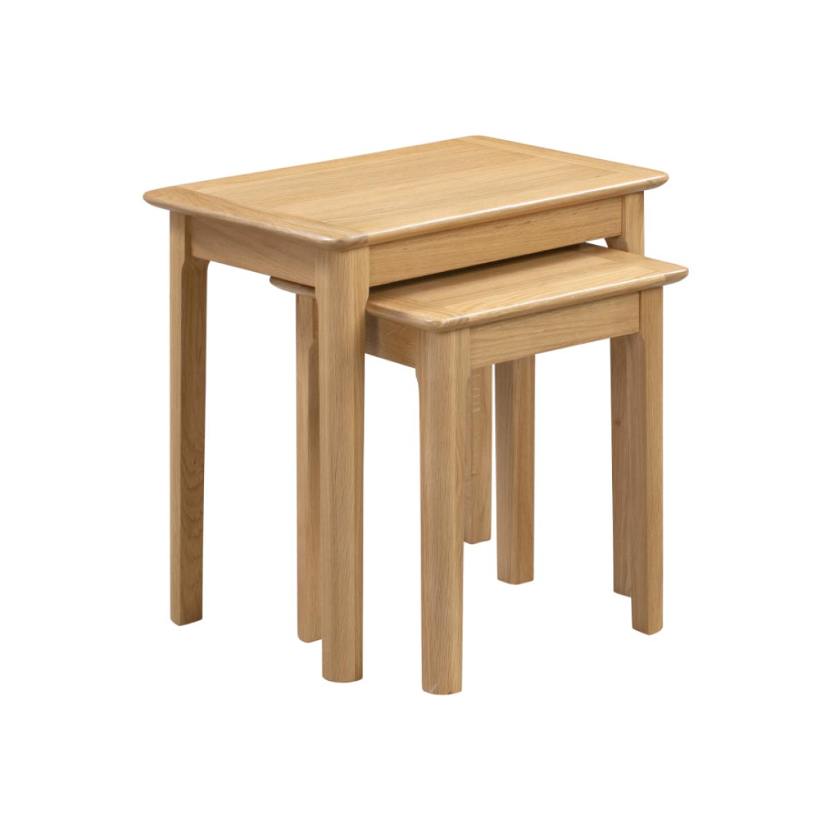 Crafted from solid oak and oak veneers, the Cotswold Nest of Tables features two tables that slip under one another, perfect for when you need extra surface space. This simple, yet stylish design is an ideal additional to any traditional living room with its soft edges and natural finish. Part of the Julian Bowen Cotswold Dining & Occasional Collection.
