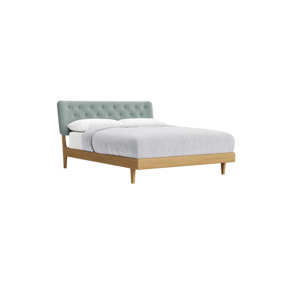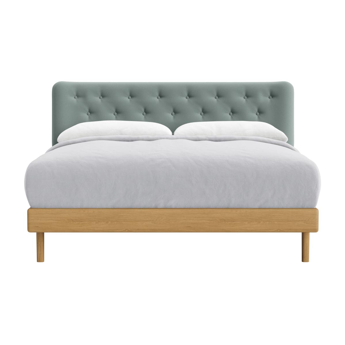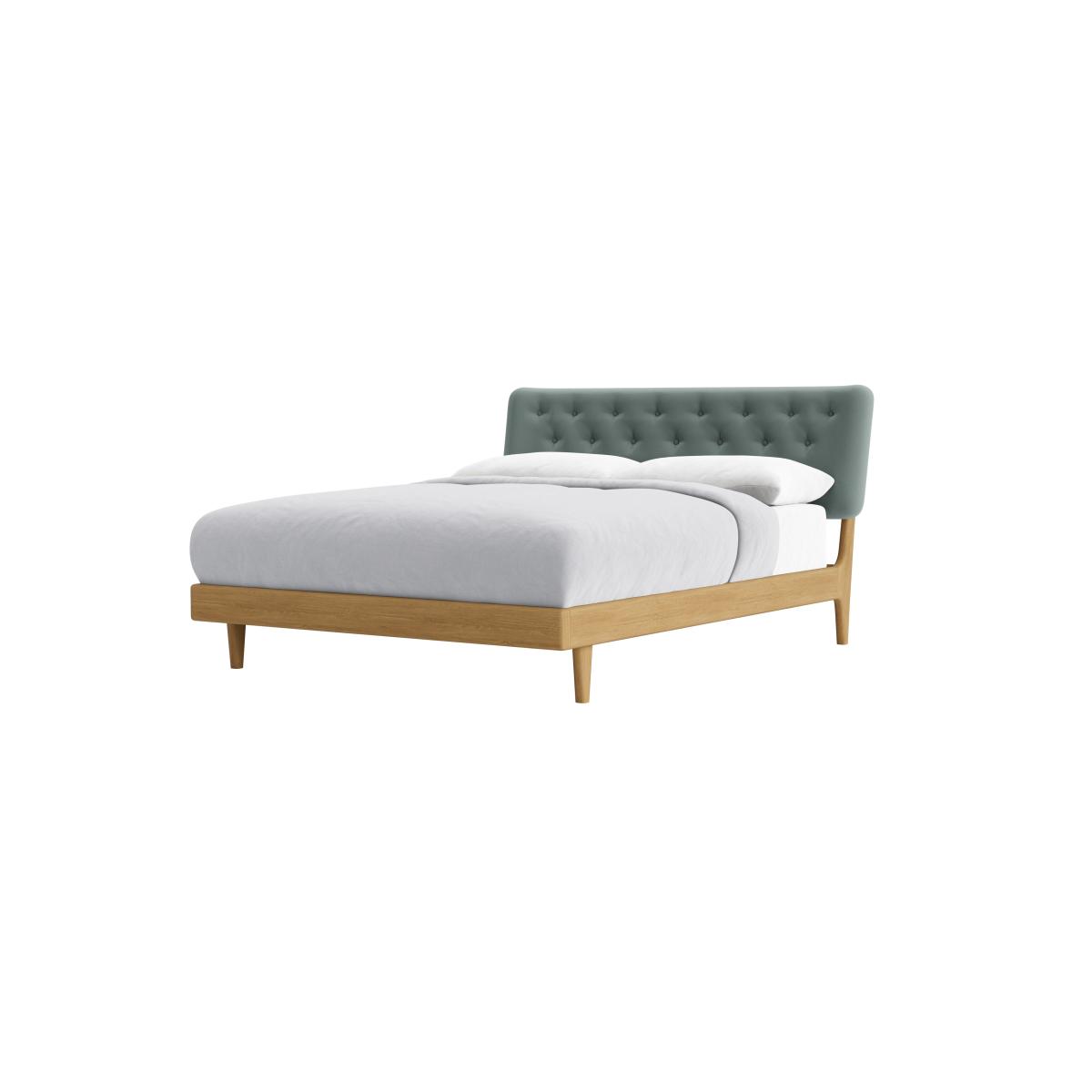 Kingsize Dr Slow Bed in Light Oak in Tin Man Clever Velvet