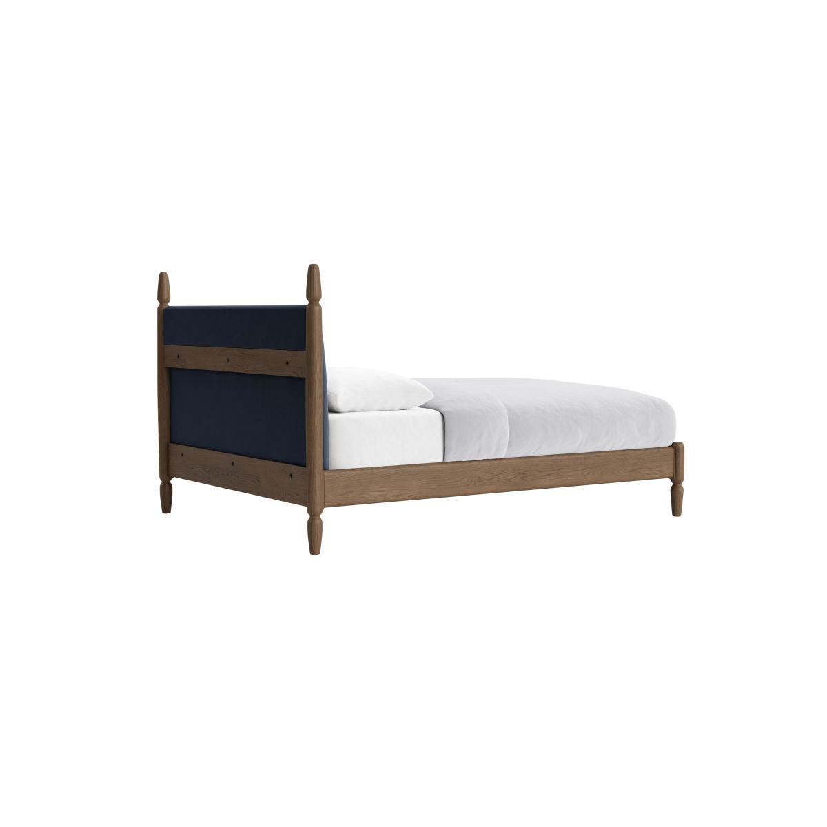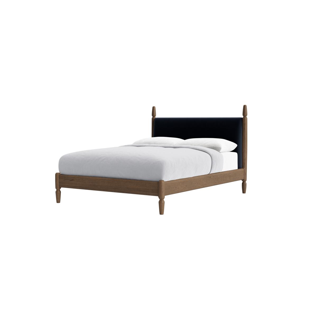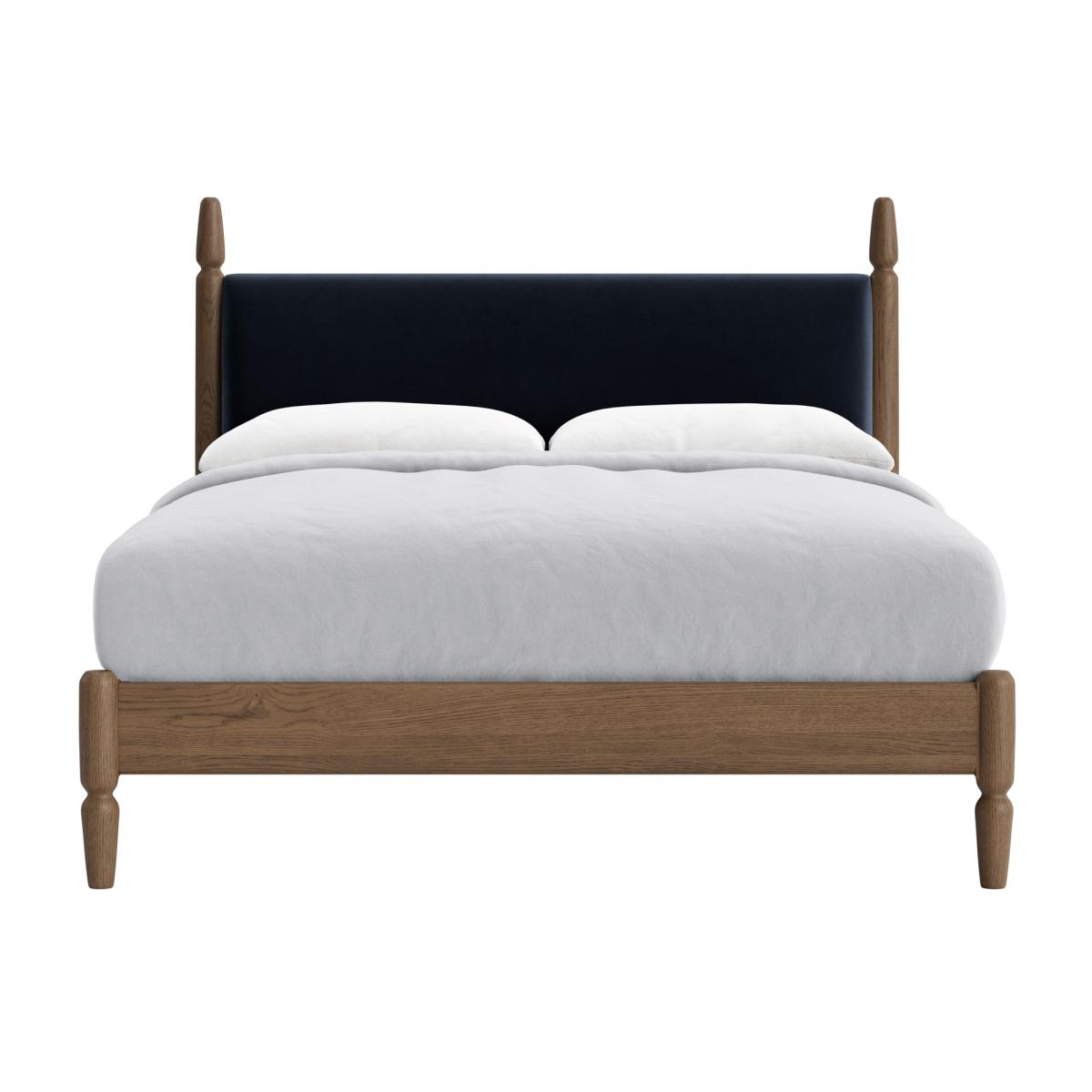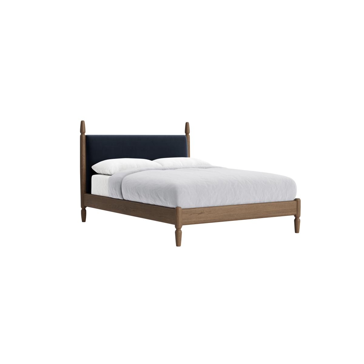 Kingsize Pippi Bed in Dark Oak in Liquorice Blue Clever Velvet