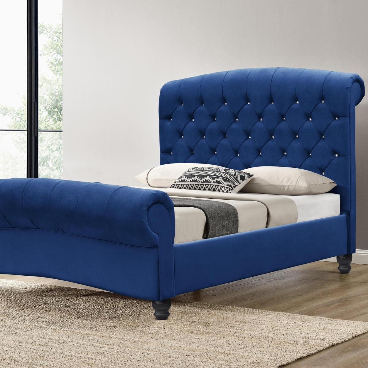 A stunning mixture of traditional & modern. A beautiful sleigh bed featuring a wonderful scroll head and footboard, in the style of the traditional Chesterfield with tufted detail, with a modern twist of sparkling diamante. The sleigh-style frame is upholstered in sumptuous plush velvet. It is made from a solid wooden frame and has a sprung slatted base to give support to the mattress and give you a fully supportive and comfortable night's sleep. With the option to purchase in a variety of colours this is guaranteed to suit your decor for years to come.