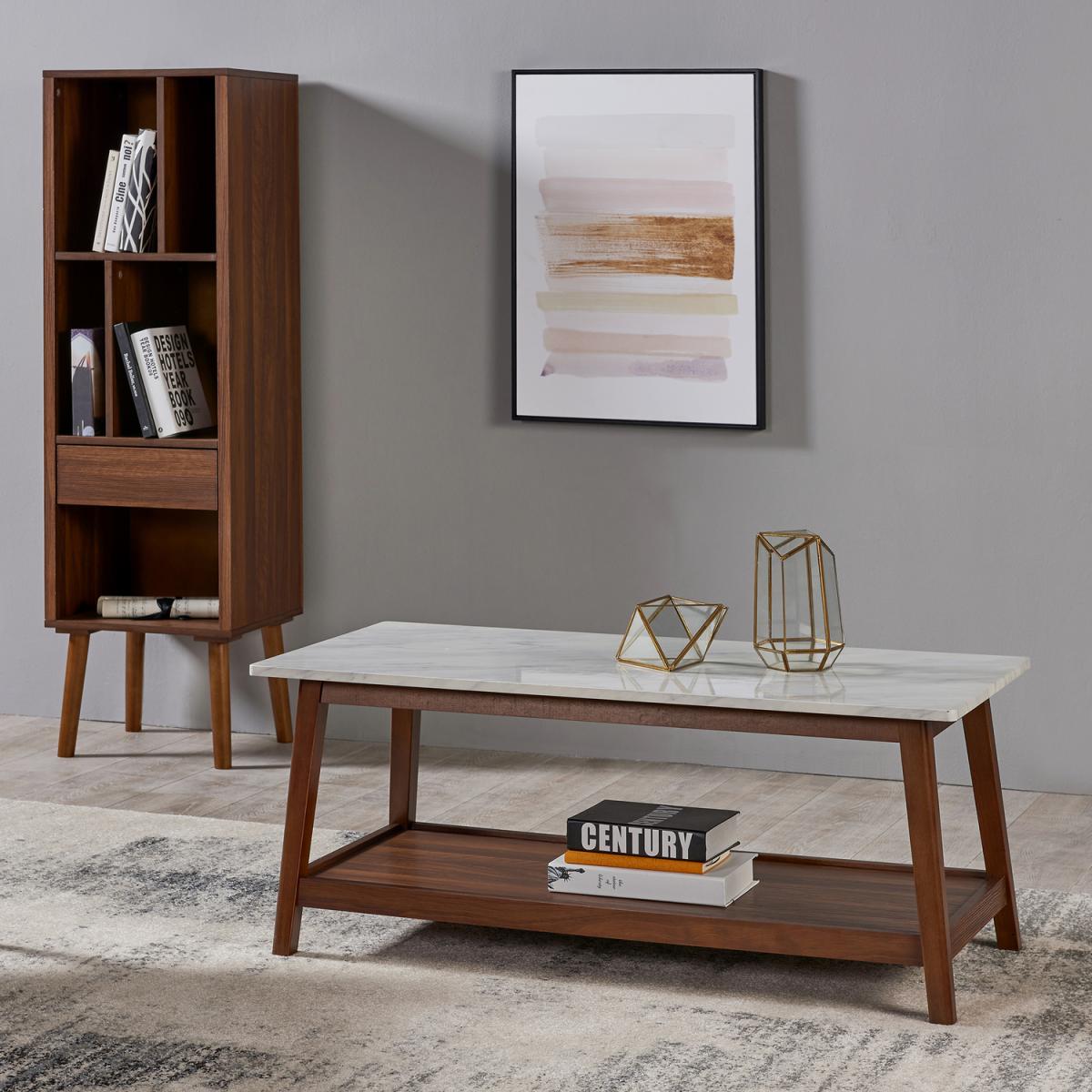 Whether you are entertaining guests with food and drinks by the TV or storing your favourite trinkets the coffee table is sure to exceed your expectations If you are in need of a solid and eye-catching piece to update your living room the Kingston Coffee Table is a great place to start. The coffee table is made from solid wood and MDF and features a faux marble top. The table features storage space below which offers an array of options to store your favourite items Versanora mixes the mid-century style with a simplistic modern style. Great fit for bedroom playroom or living room at your home. What does life mean without celebrating beauty in everyday little things? Symmetry clean lines and simple complexity Why not dare and explore We're still young in our journeys. Let's make the most of it and be ourselves. Dare to try. Make your mark. Take iconic design and beautiful aesthetics to the next level with the Versanora Range.