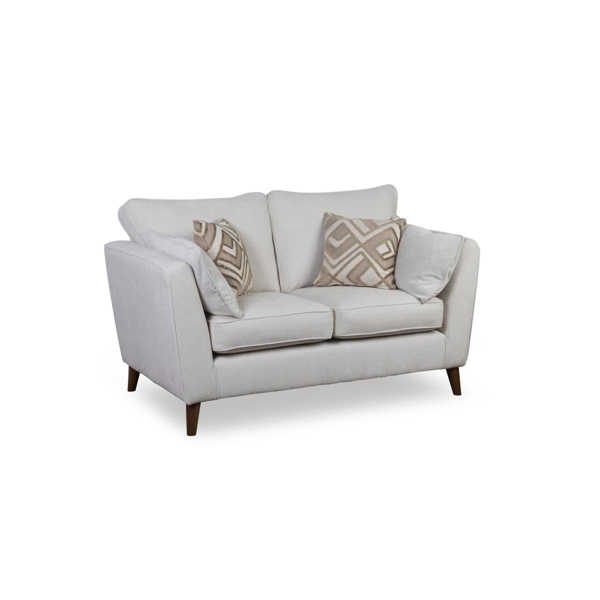 Behind the simple, elegant look of the modern sofas, chairs and storage footstool in our Kinley range is an impressive array of features designed to offer the ultimate in comfort and support. You’ll enjoy sprung seats and backs, luxurious cushioning, feather-filled arm bolsters and scatter cushions, long-lasting reversible seat and back cushions and gorgeously soft chenille upholstery. The look is cleverly understated to fit with all styles of décor, and with generous proportions, nice wide arms and a well-structured silhouette, every piece in the collection is so inviting. Handcrafted in the UK, the Kinley range is exclusively available at Furniture Village. Modern and understated, our two-seater Kinley sofa is anything but minimal when it comes to comfort. Generously sized, it has a sprung seat and back, luxurious cushioning and feather arm bolsters and scatter cushions. Why you'll love it Understated style meets oversized comfort in our Kinley range. This large 2-seater sofa is elegant and modern with a host of comfort features. Reversible seat and back cushioning for long-lasting comfort and style. Sprung seat and back for fabulous all-over support. Comes complete with 2 matching feather arm bolsters and 2 coordinating feather scatters. Gorgeously soft woven chenille upholstery in a choice of colours. Solid oak legs in a fashionable dark wood finish. Handcrafted in the UK exclusively for Furniture Village. This 2-seater sofa is part of our Kinley range. What you need to know Medium comfort level. Seat suspension: 9-gauge steel spring. Seat cushioning: foam. Seat cushioning is reversible. Back suspension: webbing. Back cushioning: fibre. Back cushioning is reversible. Feet are removable. Plump, turn and rotate cushions regularly. Some fabrics can show wear on areas of more use or in direct sunlight. Clean regularly using a soft brush or vacuum with the curtain attachment. Deal with any spills promptly. Professional cleaning advised for oil- and grease-based stains. Please read our upholstery care guide for more advice. Item code: KINL2S--LIN-001