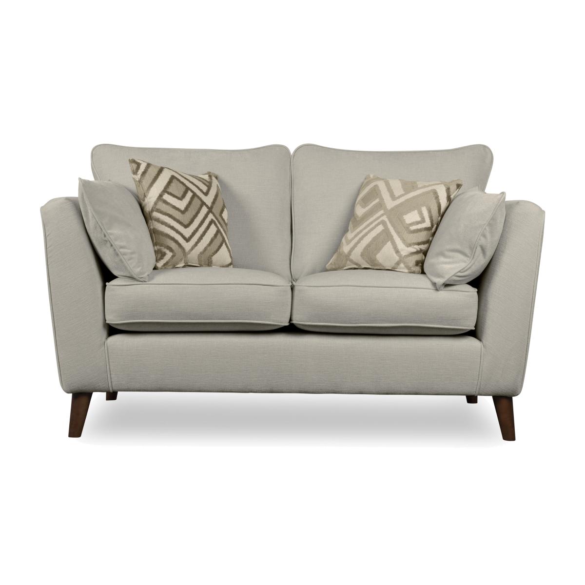 Behind the simple, elegant look of the modern sofas, chairs and storage footstool in our Kinley range is an impressive array of features designed to offer the ultimate in comfort and support. You’ll enjoy sprung seats and backs, luxurious cushioning, feather-filled arm bolsters and scatter cushions, long-lasting reversible seat and back cushions and gorgeously soft chenille upholstery. The look is cleverly understated to fit with all styles of décor, and with generous proportions, nice wide arms and a well-structured silhouette, every piece in the collection is so inviting. Handcrafted in the UK, the Kinley range is exclusively available at Furniture Village. Modern and understated, our two-seater Kinley sofa is anything but minimal when it comes to comfort. Generously sized, it has a sprung seat and back, luxurious cushioning and feather arm bolsters and scatter cushions. Why you'll love it Understated style meets oversized comfort in our Kinley range. This large 2-seater sofa is elegant and modern with a host of comfort features. Reversible seat and back cushioning for long-lasting comfort and style. Sprung seat and back for fabulous all-over support. Comes complete with 2 matching feather arm bolsters and 2 coordinating feather scatters. Gorgeously soft woven chenille upholstery in a choice of colours. Solid oak legs in a fashionable dark wood finish. Handcrafted in the UK exclusively for Furniture Village. This 2-seater sofa is part of our Kinley range. What you need to know Medium comfort level. Seat suspension: 9-gauge steel spring. Seat cushioning: foam. Seat cushioning is reversible. Back suspension: webbing. Back cushioning: fibre. Back cushioning is reversible. Feet are removable. Plump, turn and rotate cushions regularly. Some fabrics can show wear on areas of more use or in direct sunlight. Clean regularly using a soft brush or vacuum with the curtain attachment. Deal with any spills promptly. Professional cleaning advised for oil- and grease-based stains. Please read our upholstery care guide for more advice. Item code: KINL2S--MIST-001