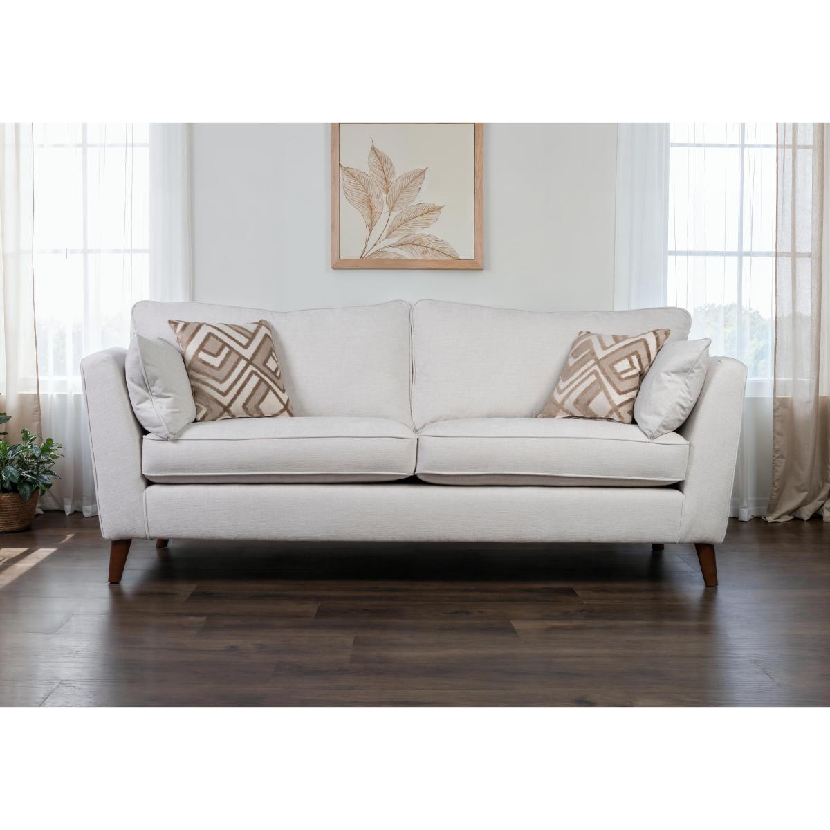 Behind the simple, elegant look of the modern sofas, chairs and storage footstool in our Kinley range is an impressive array of features designed to offer the ultimate in comfort and support. You’ll enjoy sprung seats and backs, luxurious cushioning, feather-filled arm bolsters and scatter cushions, long-lasting reversible seat and back cushions and gorgeously soft chenille upholstery. The look is cleverly understated to fit with all styles of décor, and with generous proportions, nice wide arms and a well-structured silhouette, every piece in the collection is so inviting. Handcrafted in the UK, the Kinley range is exclusively available at Furniture Village. Modern and understated, our three-seater Kinley sofa is anything but minimal when it comes to comfort. Generously sized, it has a sprung seat and back, luxurious cushioning and feather arm bolsters and scatter cushions. Why you'll love it Understated style meets oversized comfort in our Kinley range. This large 3-seater sofa is elegant and modern with a host of comfort features. Reversible seat and back cushioning for long-lasting comfort and style. Sprung seat and back for fabulous all-over support. Comes complete with 2 matching feather arm bolsters and 2 coordinating feather scatters. Gorgeously soft woven chenille upholstery in a choice of colours. Solid oak legs in a fashionable dark wood finish. Handcrafted in the UK exclusively for Furniture Village. This 3-seater sofa is part of our Kinley range. What you need to know Medium comfort level. Seat suspension: 9-gauge steel spring. Seat cushioning: foam. Seat cushioning is reversible. Back suspension: webbing. Back cushioning: fibre. Back cushioning is reversible. Feet are removable. Plump, turn and rotate cushions regularly. Some fabrics can show wear on areas of more use or in direct sunlight. Clean regularly using a soft brush or vacuum with the curtain attachment. Deal with any spills promptly. Professional cleaning advised for oil- and grease-based stains. Please read our upholstery care guide for more advice. Item code: KINL3S--LIN-001