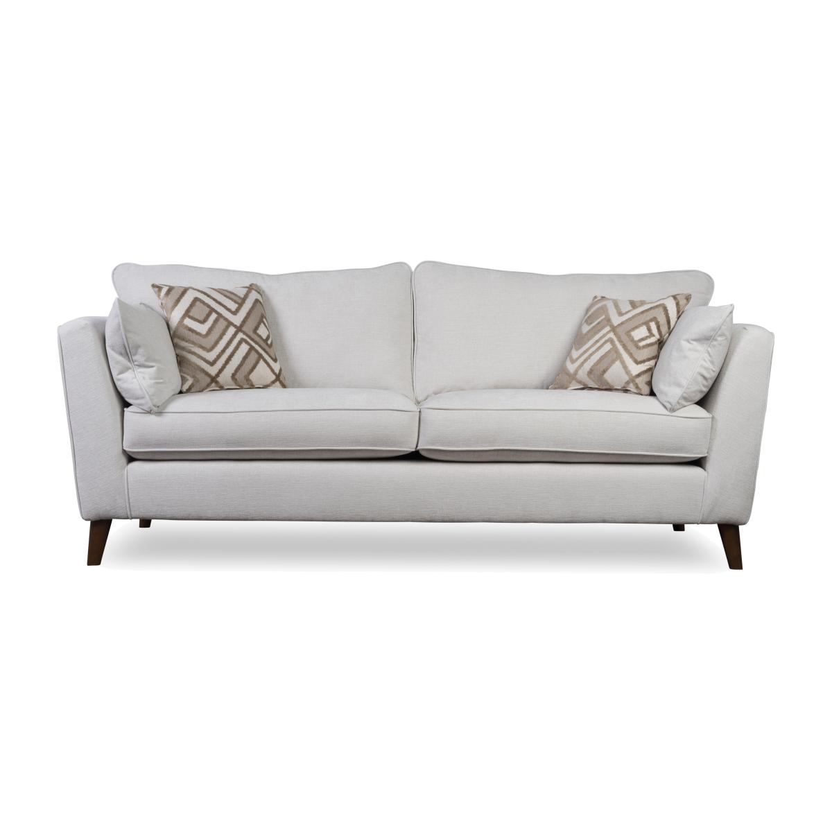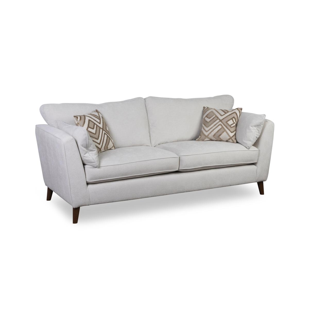 Behind the simple, elegant look of the modern sofas, chairs and storage footstool in our Kinley range is an impressive array of features designed to offer the ultimate in comfort and support. You’ll enjoy sprung seats and backs, luxurious cushioning, feather-filled arm bolsters and scatter cushions, long-lasting reversible seat and back cushions and gorgeously soft chenille upholstery. The look is cleverly understated to fit with all styles of décor, and with generous proportions, nice wide arms and a well-structured silhouette, every piece in the collection is so inviting. Handcrafted in the UK, the Kinley range is exclusively available at Furniture Village. Modern and understated, our four-seater Kinley sofa is anything but minimal when it comes to comfort. Generously sized, it has a sprung seat and back, luxurious cushioning and feather arm bolsters and scatter cushions. Why you'll love it Understated style meets oversized comfort in our Kinley range. This large 4-seater sofa is elegant and modern with a host of comfort features. Reversible seat and back cushioning for long-lasting comfort and style. Sprung seat and back for fabulous all-over support. Comes complete with 2 matching feather arm bolsters and 2 coordinating feather scatters. Gorgeously soft woven chenille upholstery in a choice of colours. Solid oak legs in a fashionable dark wood finish. Handcrafted in the UK exclusively for Furniture Village. This 4-seater sofa is part of our Kinley range. What you need to know Medium comfort level. Seat suspension: 9-gauge steel spring. Seat cushioning: foam. Seat cushioning is reversible. Back suspension: webbing. Back cushioning: fibre. Back cushioning is reversible. Feet are removable. Plump, turn and rotate cushions regularly. Some fabrics can show wear on areas of more use or in direct sunlight. Clean regularly using a soft brush or vacuum with the curtain attachment. Deal with any spills promptly. Professional cleaning advised for oil- and grease-based stains. Please read our upholstery care guide for more advice. Item code: KINL4S--LIN-001