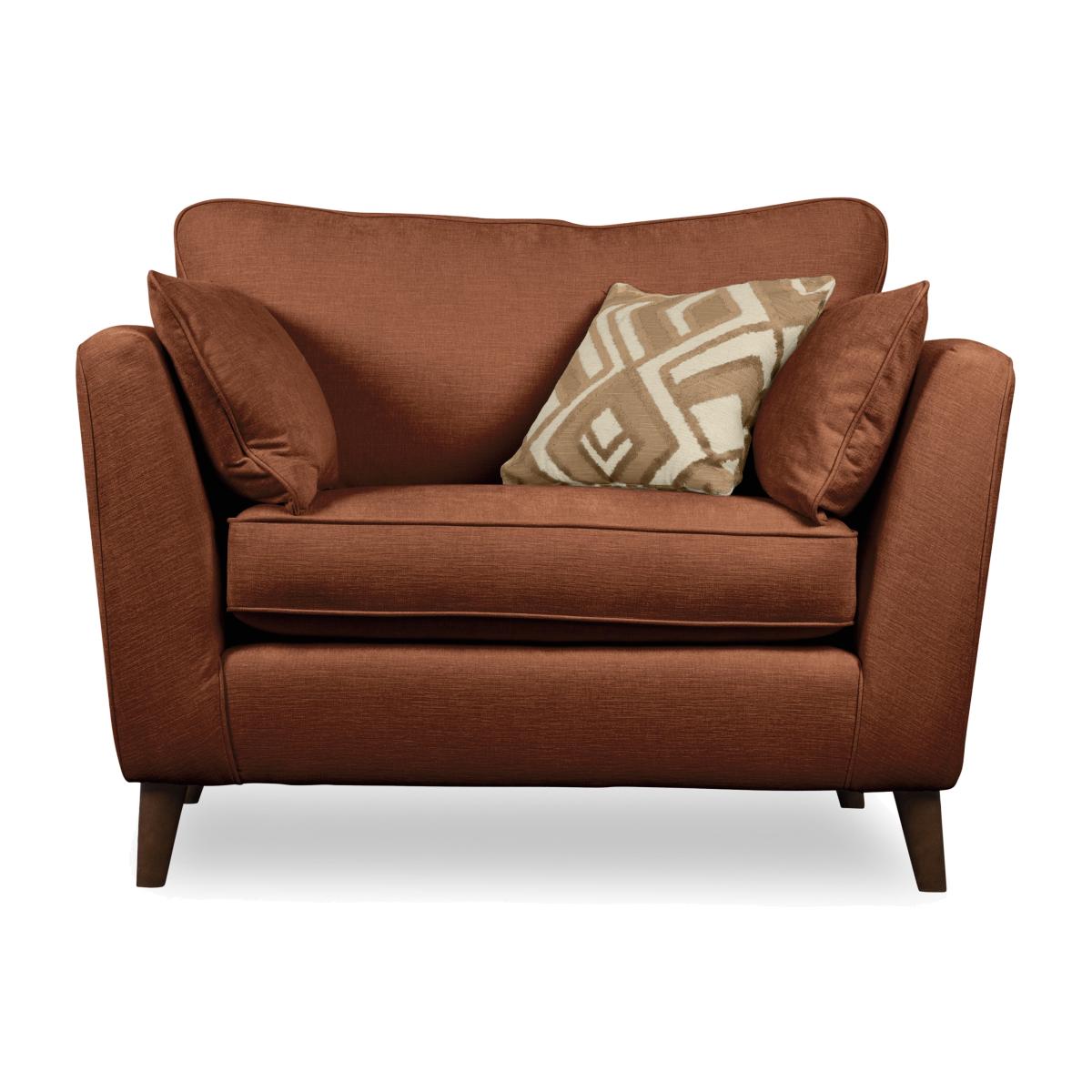 Behind the simple, elegant look of the modern sofas, chairs and storage footstool in our Kinley range is an impressive array of features designed to offer the ultimate in comfort and support. You’ll enjoy sprung seats and backs, luxurious cushioning, feather-filled arm bolsters and scatter cushions, long-lasting reversible seat and back cushions and gorgeously soft chenille upholstery. The look is cleverly understated to fit with all styles of décor, and with generous proportions, nice wide arms and a well-structured silhouette, every piece in the collection is so inviting. Handcrafted in the UK, the Kinley range is exclusively available at Furniture Village. Modern and understated, our Kinley snuggler is anything but minimal when it comes to comfort. Generously sized, it has a sprung seat and back, luxurious cushioning and feather arm bolsters and scatter cushion. Why you'll love it Understated style meets oversized comfort in our Kinley range. This large snuggler is elegant and modern with a host of comfort features. Reversible seat and back cushioning for long-lasting comfort and style. Sprung seat and back for fabulous all-over support. Comes complete with 2 matching feather arm bolsters and a coordinating feather scatter. Gorgeously soft woven chenille upholstery in a choice of colours. Solid oak legs in a fashionable dark wood finish. Handcrafted in the UK exclusively for Furniture Village. This snuggler is part of our Kinley range. What you need to know Medium comfort level. Seat suspension: 9-gauge steel spring. Seat cushioning: foam. Seat cushioning is reversible. Back suspension: webbing. Back cushioning: fibre. Back cushioning is reversible. Feet are removable. Plump and turn cushions regularly. Some fabrics can show wear on areas of more use or in direct sunlight. Clean regularly using a soft brush or vacuum with the curtain attachment. Deal with any spills promptly. Professional cleaning advised for oil- and grease-based stains. Please read our upholstery care guide for more advice. Item code: KINLSNUGHENN-001