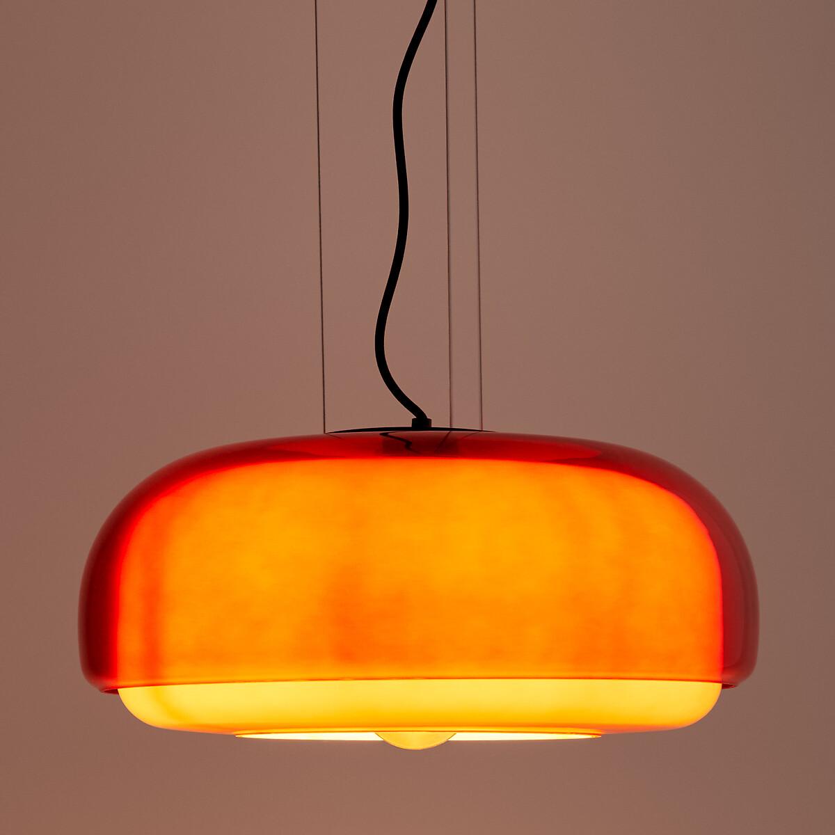 The Kinoko suspension is one of Lee's signature pieces : exclusive creations by our design studio. They represent key pieces from the collection whose line and manufacturing quality shape the La Redoute Interiors universe. Always on trend, it's easy to see why Signatures are often customer favourites. Will they be yours. Designed internally by Aurore Delest : "To design the Kinoko suspension, I was inspired by the round shapes and colours of the 70s, while modernising them. With its double nested mushroom-shaped sphere, which combines both transparency and opacity, it creates a soft and friendly atmosphere. "Product Details • Double colorued glass lampshade pendant light • Steel structure covered with epoxy paint • E27 socket for LED bulb of 10W max (not included) • Each piece is unique, the glass is hand-blown and may vary slightly from one product to another. Dimensions • Diameter: 45cm • Total Height: 103.6cm Parcel Dimensions • 1 parcel • L53 x H42 x D53cm. 9kg.