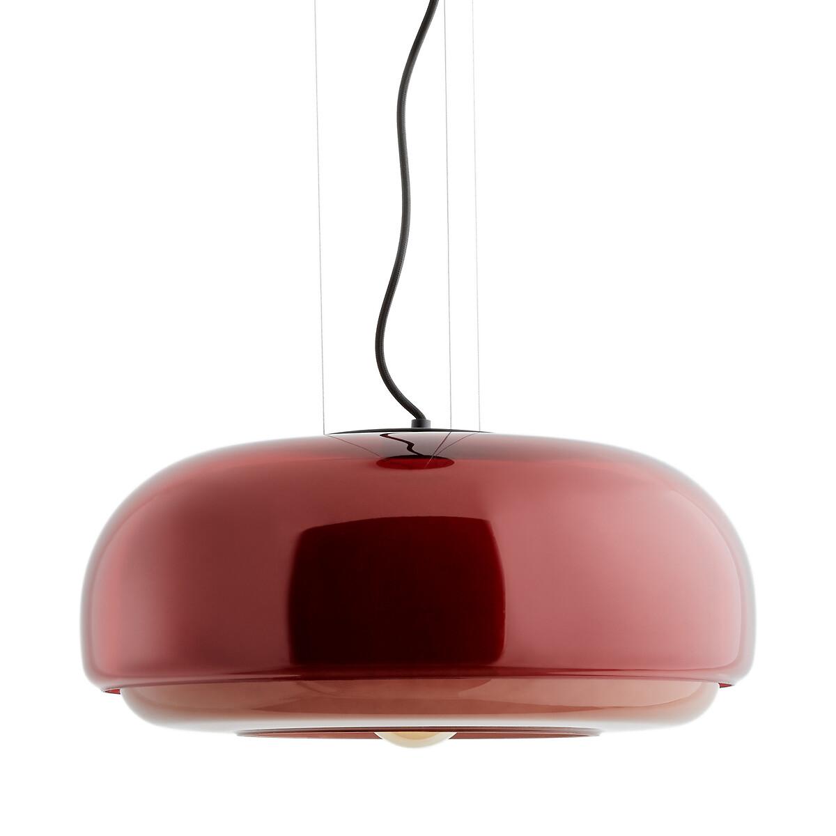 In tinted glass, the Kinoko pendant light diffuses a pleasant light and impresses with its dimensions. A design with a 70s accent by La Redoute Intégrés. Product Details • Double colorued glass lampshade pendant light • Steel structure covered with epoxy paint • E27 socket for LED bulb of 10W max (not included) • Each piece is unique, the glass is hand-blown and may vary slightly from one product to another. Dimensions • Diameter: 45cm • Total Height: 103.6cm Parcel dimensions and weight • 1 parcel • L53 x H42 x D53cm. 9kg.