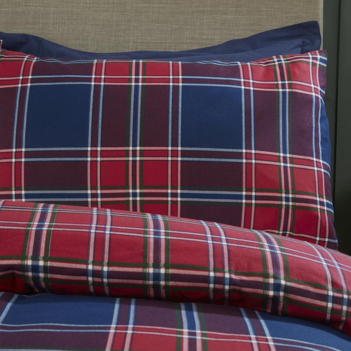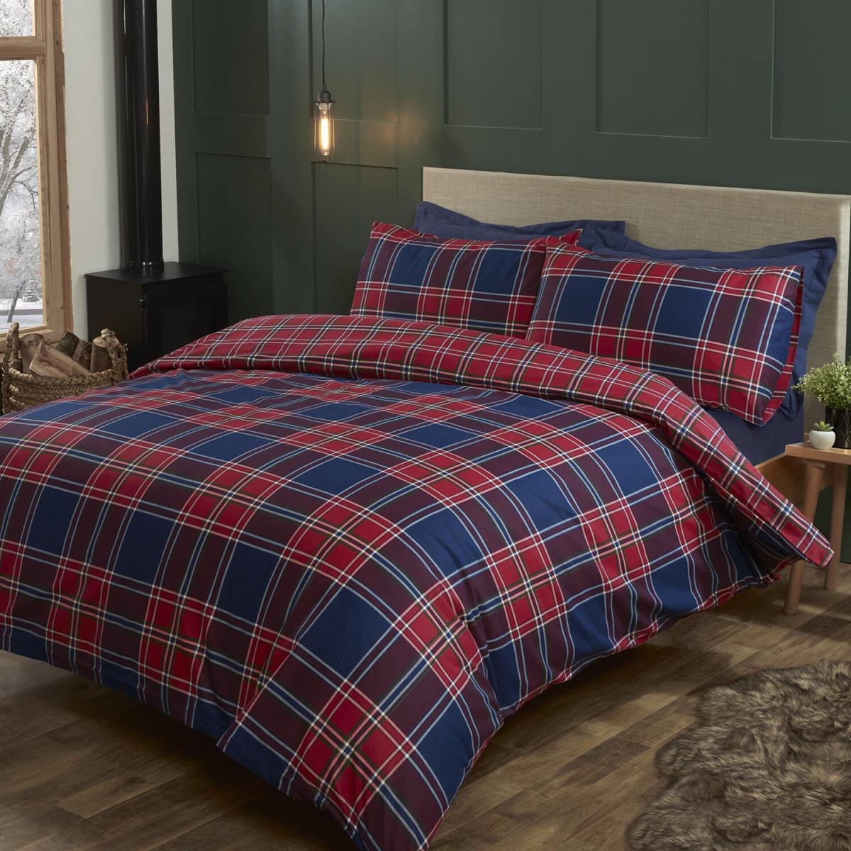 Kinross Check Duvet Cover and Pillowcase Set - Red/Blue / Double