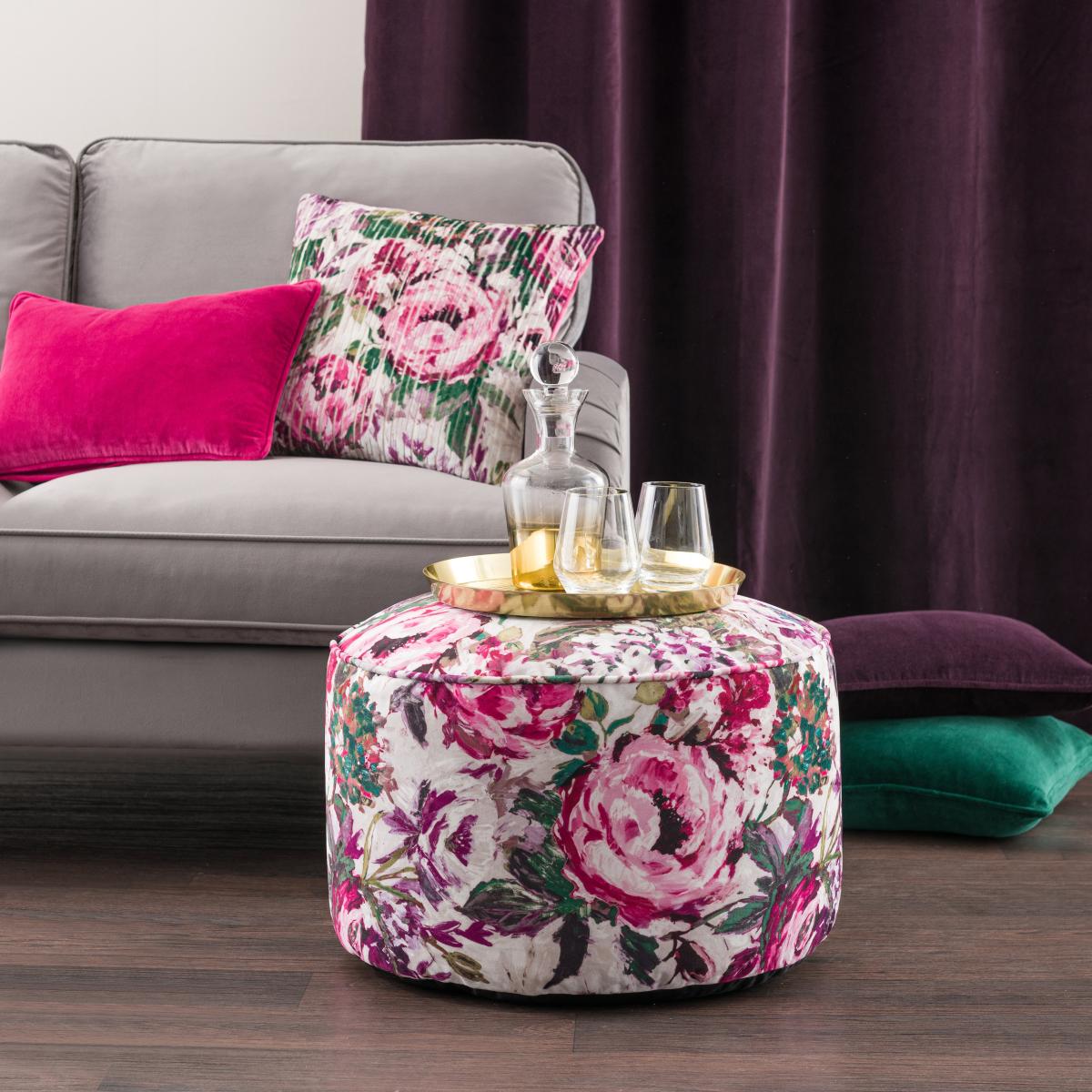 Make a bold statement with our Kinsley Floral Pouffe. The striking combination of large florals and pretty foliage printed on sumptuous velvet fabric will turn heads in your home. The neat piping detail adds a touch of sophistication, making it a focal point of any room. Filled with polybeads, this pouffe offers both style and comfort. Don't forget to check out our coordinating items in the same design to complete the look. At Dunelm you'll find our beanbag zips are installed upside down, but you'll thank us later for doing this as a safety precaution to prevent curious children from getting inside and spilling the bean everywhere.