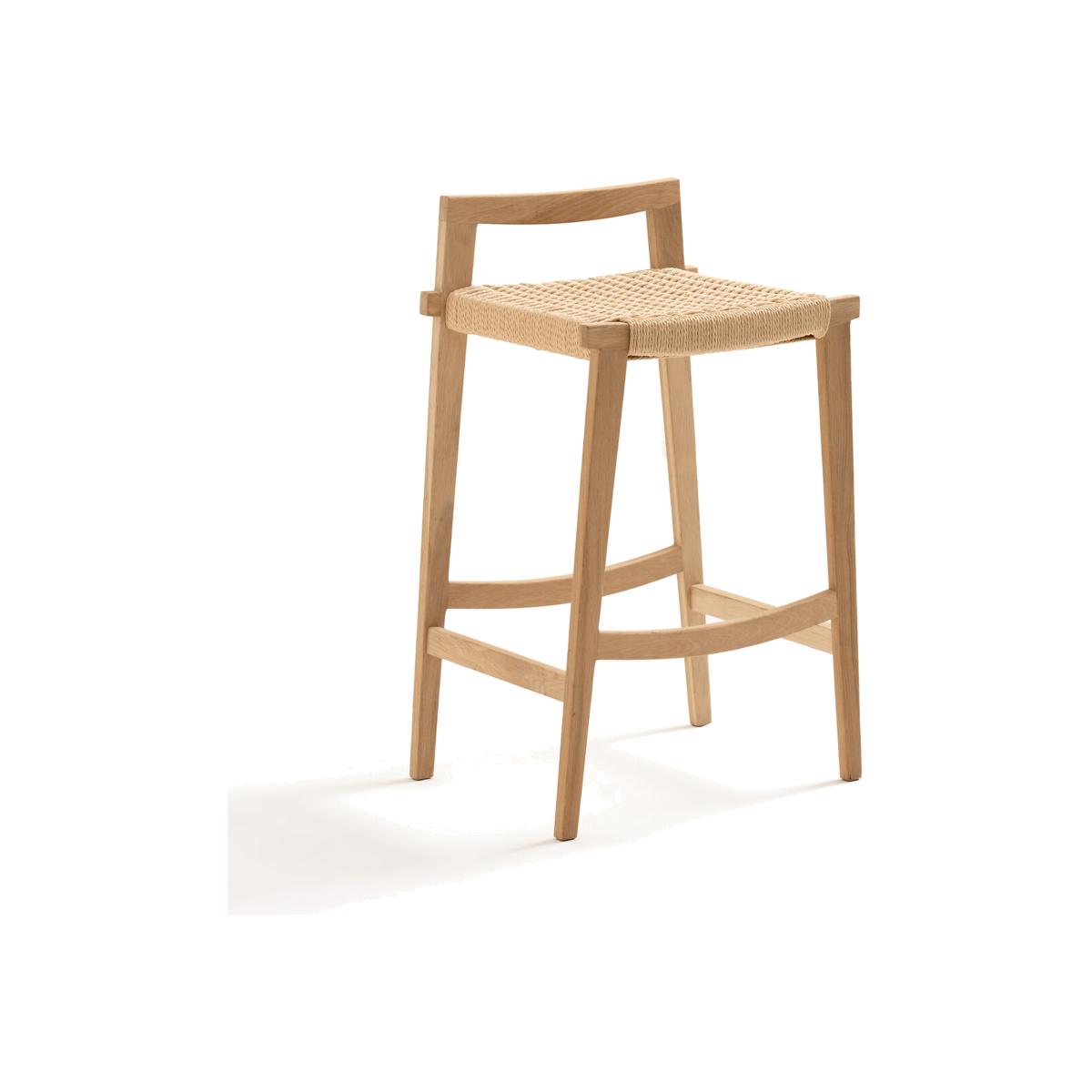 Kioto Mid-Height Oak and Wicker Bar Stool