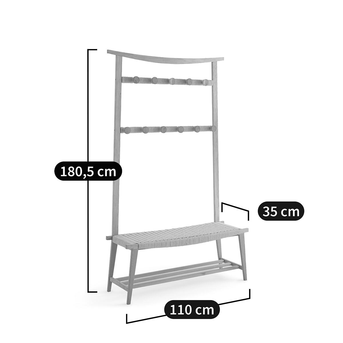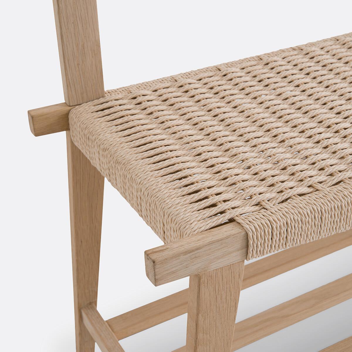 Solid oak with a hand-woven paper rope seat. In a Japandi spirit, the Kioto wardrobe combines the beauty of Japanese style with the timeless elegance of Scandinavian furniture. Product Details • Solid oak with nitrocellulose finish and hand-woven paper rope • FSC® Mixed certified wood • 1 bench • 1 lower shelf for shoes • 11 hooks • Wall mounting system included, screws and dowels not providedDimensions. Overall • Length: 110cm • Height: 180.5cm • Depth: 35cm • Weight: 9.5kg. Usable dimensions • Bench : L110 x H42 x D35cm • Shelf:L101.5 x H25.5 x D23cmDelivery:. This product is sold for self-assembly. Available for home delivery. • WOOD FROM MORE SUSTAINABLY MANAGED FORESTS AND CONTROLLED SOURCES. FSC® Mix wood contains at least 70% FSC® certified and/or recycled wood, the remainder being FSC® controlled wood. Dimensions and weight of parcel • 2 parcels • L144 x H11 x D22cm. 5kg. • L115 x H49 x D41cm. 8.5kg.