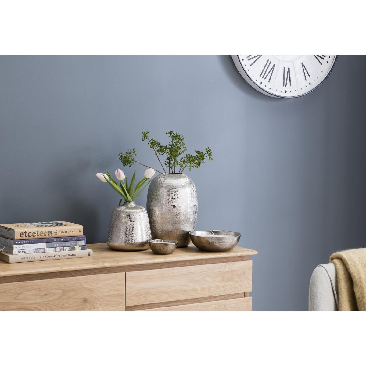 Bring a touch of refinement to your hallway with the Kir textured vase. This large vase is crafted from metal, which has been textured and perfected with a mesmerising silver finish for added elegance. A fabulous home for a handful of stems, an autumnal cotton bud stem or bright coloured flowers, the balloon-shaped Kir is a must for those who want to create an extra special space to welcome them home every day. The Kir is part of a range and is also available in Textured Silver or Gold.
