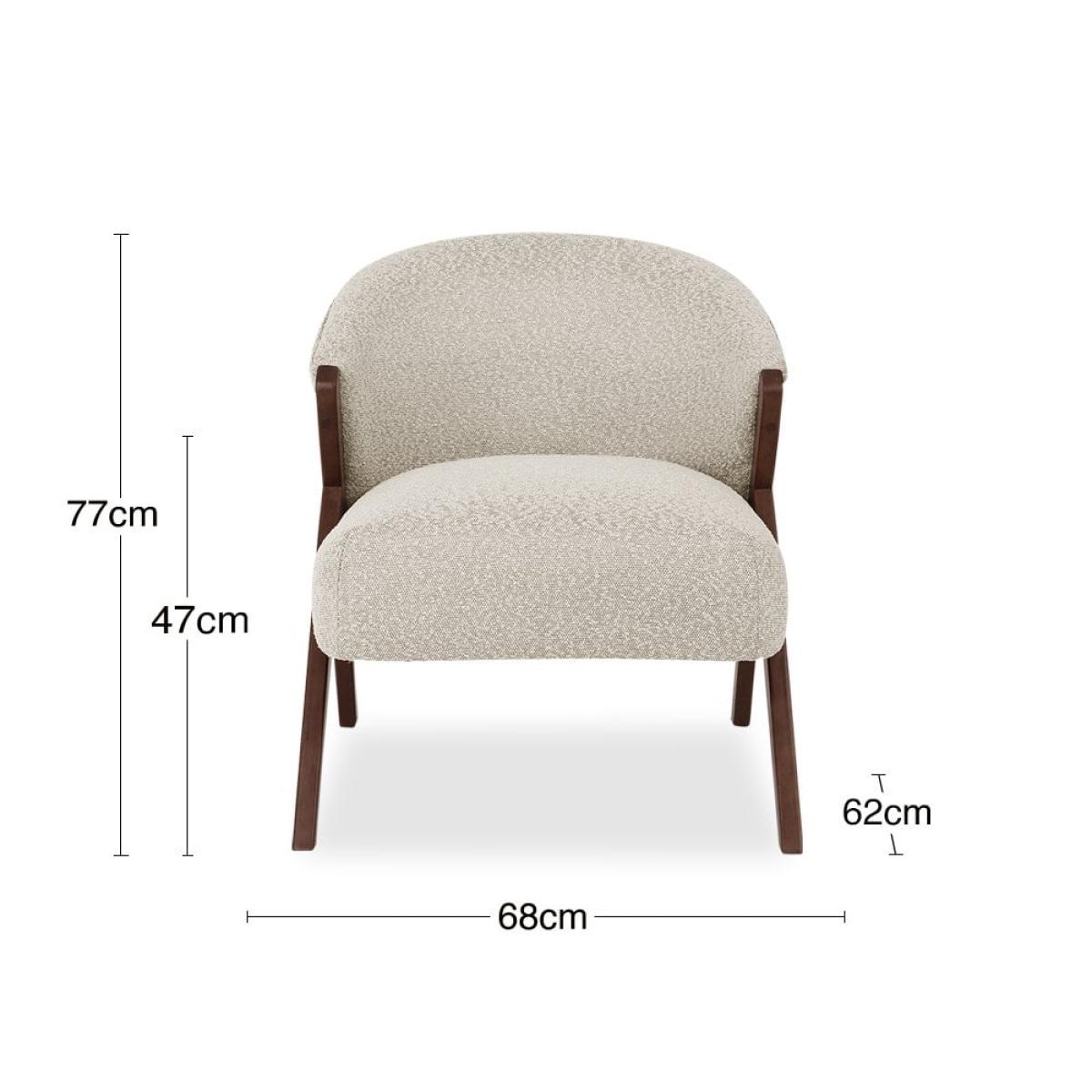Iconic design with vintage vibes, the Kira Boucle Accent Chair elevates cosy corners and living room nooks. For a statement armchair with mid-century accents, we are in love with the colour palette of greys and creams with walnut-stained wood. In a luxuriously tactile boucle seat and backrest that is sustainably sourced, the seat is padded and spring set for support and comfort, with the backrest beautifully curved. Set within those dynamic mid-century wooden legs, this is a classic. For a rich depth of colour and unique softness, our boucle used in this chair is not only of the highest quality but it is made from recycled PET yarns so it is kinder to the environment too.