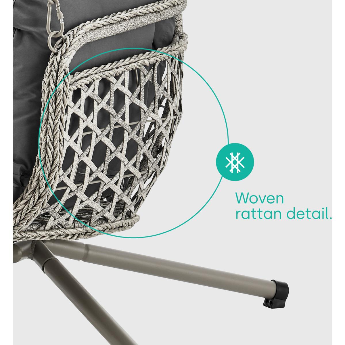 Kira Hanging Rattan Swing Chair with Canopy - Grey