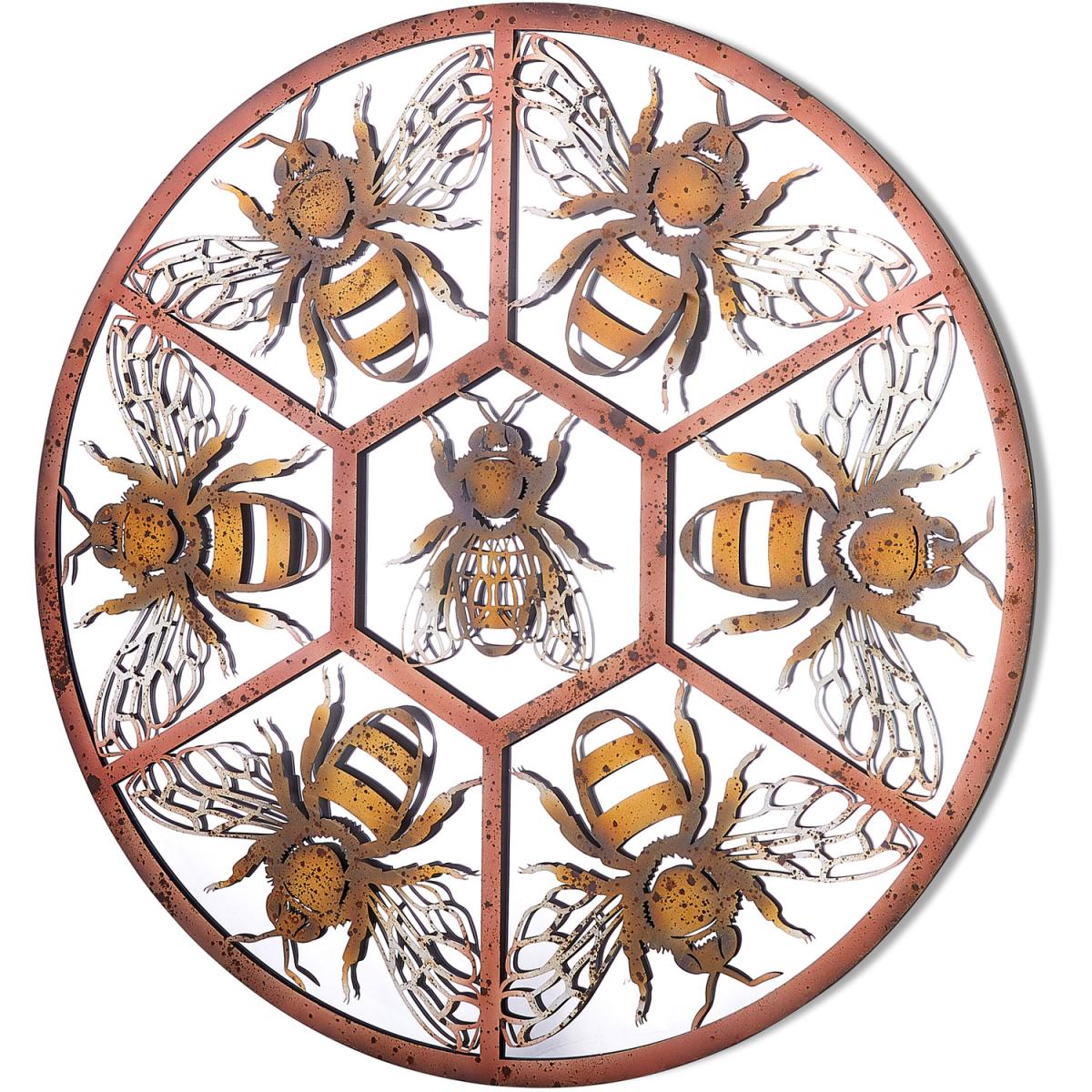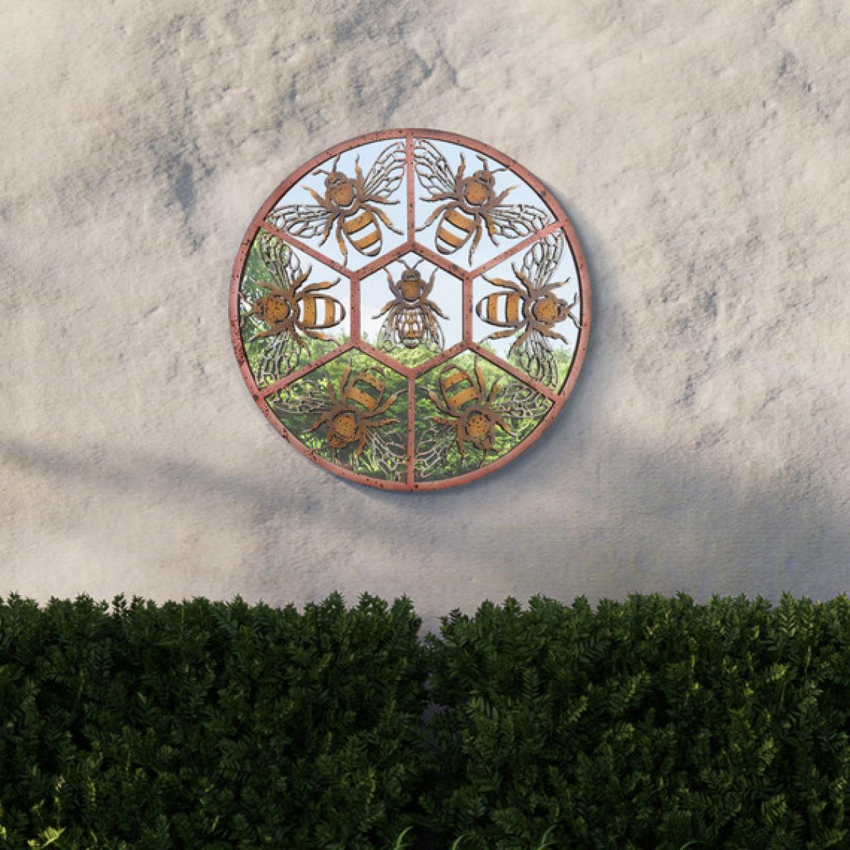 Kirkby Metal Circular Bumble Bee Window Garden Mirror - Multi