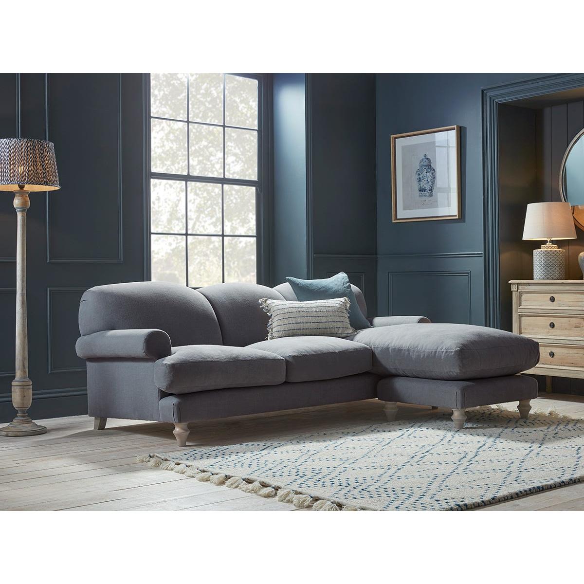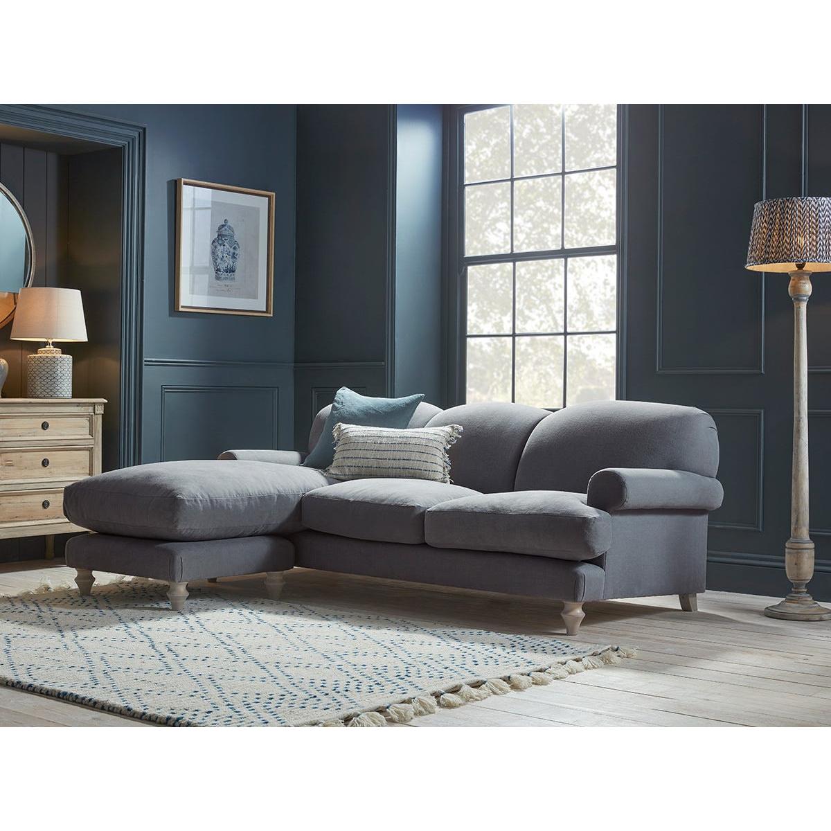 A perfect combination of style and comfort, the Kiruna furniture range is made to order and includes spacious sofas and loveseats. The classic roll arm style of these pieces will suit any setting. The back and seat cushions are deep and well-sprung, ensuring a comfortable and supportive experience whether sitting or lounging. The higher back with a wedge-shaped profile, along with the seat cushions that wrap around the low P-shaped arms, provide a timeless silhouette. The chaise sofa is an excellent space saver in smaller rooms or an elegant way to divide an open plan area and is available with a left or right hand facing chaise. The Kiruna range includes a chaise sofa, three seater sofa, two seater sofa, loveseat and ottoman. Our Kiruna collection can be upholstered in a choice of 34 distinctive shades and six fabrics to suit your style. Read our Upholstery FAQs View our full Upholstery Terms and Conditions