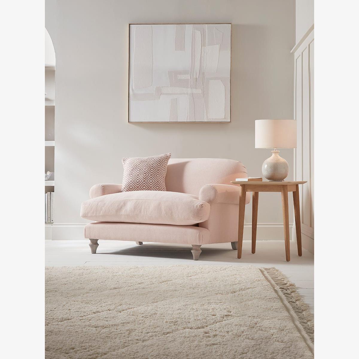 A perfect combination of style and comfort, the Kiruna furniture range is made to order and includes spacious sofas and loveseats. The classic roll arm style of these pieces will suit any setting. The back and seat cushions are deep and well-sprung, ensuring a comfortable and supportive experience whether sitting or lounging. The higher back with a wedge-shaped profile, along with the seat cushions that wrap around the low P-shaped arms, provide a timeless silhouette. The generous loveseat offers ample space for two people to snuggle or one person to curl up with room to spare for a faithful dog or cat. The Kiruna range includes a chaise sofa, three seater sofa, two seater sofa, loveseat and ottoman. Our Kiruna collection can be upholstered in a choice of 34 distinctive shades and six fabrics to suit your style. Read our Upholstery FAQs View our full Upholstery Terms and Conditions