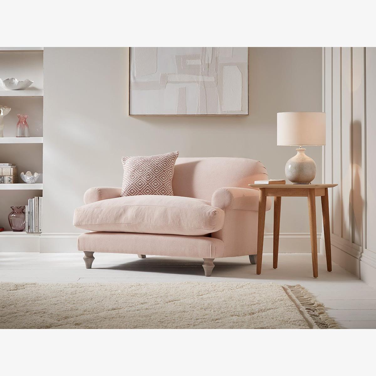 A perfect combination of style and comfort, the Kiruna furniture range is made to order and includes spacious sofas and loveseats. The classic roll arm style of these pieces will suit any setting. The back and seat cushions are deep and well-sprung, ensuring a comfortable and supportive experience whether sitting or lounging. The higher back with a wedge-shaped profile, along with the seat cushions that wrap around the low P-shaped arms, provide a timeless silhouette. The generous loveseat offers ample space for two people to snuggle or one person to curl up with room to spare for a faithful dog or cat. The Kiruna range includes a chaise sofa, three seater sofa, two seater sofa, loveseat and ottoman. Our Kiruna collection can be upholstered in a choice of 34 distinctive shades and six fabrics to suit your style. Read our Upholstery FAQs View our full Upholstery Terms and Conditions