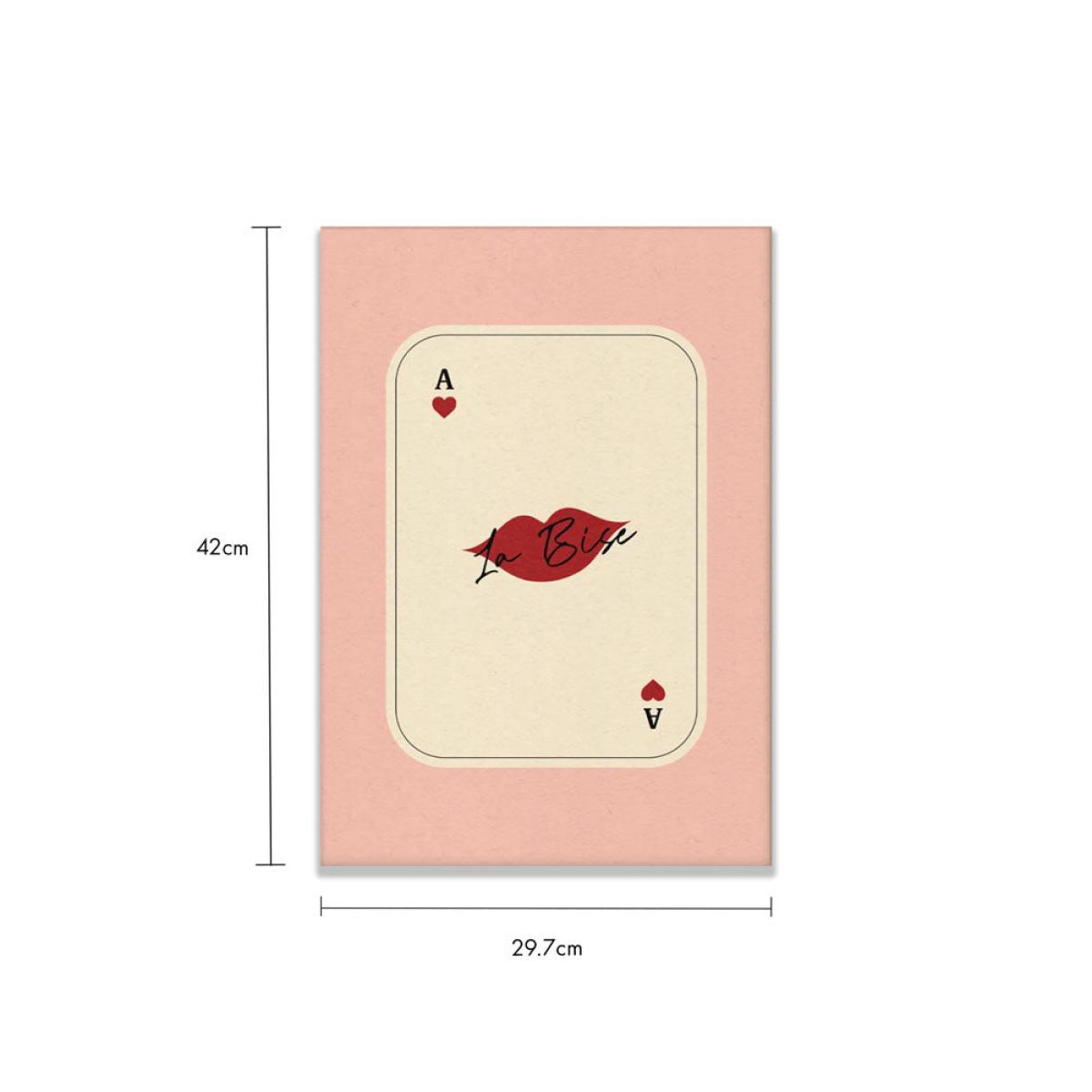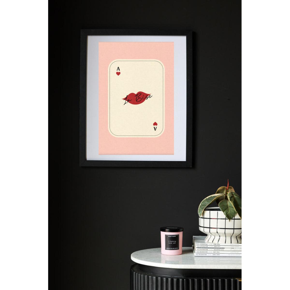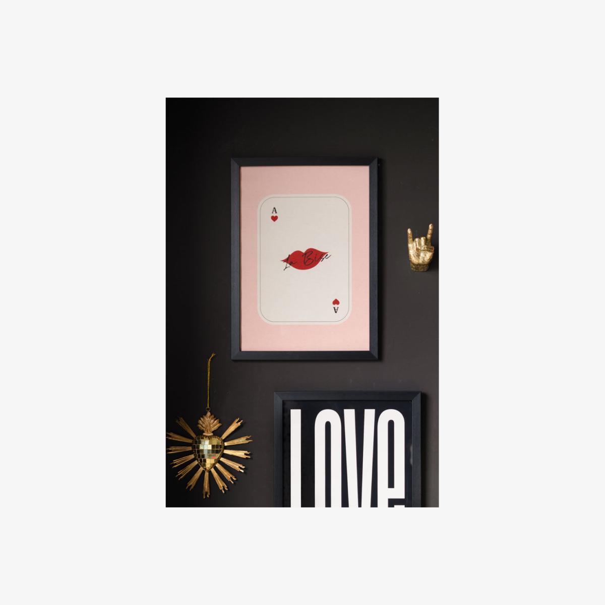 Whether cards or kisses are your thing (and if you’re a fan of both, you’re in luck), this print is the perfect piece to liven up your wall space. Beautifully understated, this demonstrates how clever use of colour, image and sparing typography can be combined to create something gorgeous and impactful. The eye is drawn to the blood red lips popping out of the neutral background, while the corner detailing balances the piece and brings it all together, saving it from looking too sparse. There's a textured quality to the paper that gives this a gorgeously tactile appearance, too. Team RSG thinks this is perfect for the hallway or bedroom – we like to style this on its own, so as not to detract from how pretty it is. That said, your home, your rules! As co-founder Jane likes to say, rules are made to be broken, so don’t be afraid to experiment to see where looks and feels best. - Kiss Playing Card framed art print - Measures: A3 (42cm x 29.7cm) - Please note frame not supplied