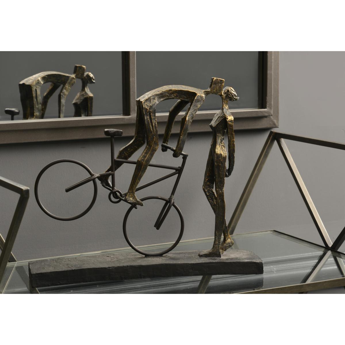 Whimsical sculpture of a kissing couple, in a gorgeous antiqued bronze finish. An artistic finishing touch, which could be a favourite with cyclists. Why you’ll love it. Whimsical kissing couple sculpture. Timelessly romantic. Stylised figures in a textured antiqued bronze finish. The bike is black painted iron. This artistic sculpture sits on a rectangular stone plinth. What you need to know. The figures are cast polyresin. With a textured, antique bronze finish. Rectangular stone plinth. Dimensions. Width. 35 cm (14 inches). Depth. 8 cm (3.2 inches). Height. 29 cm (11.4 inches). Weight. 1.4 kg.