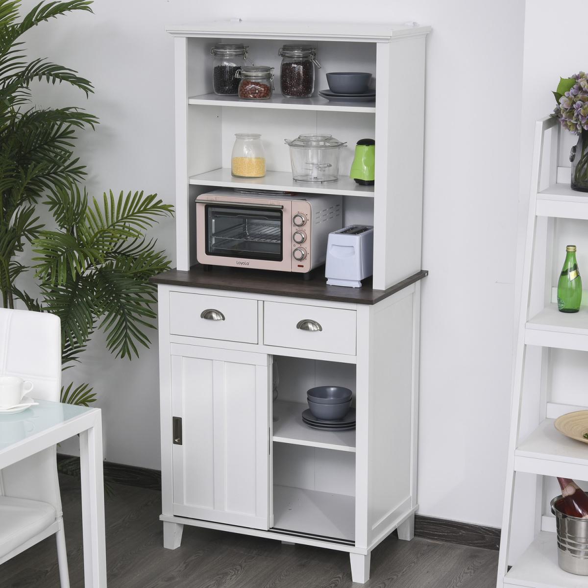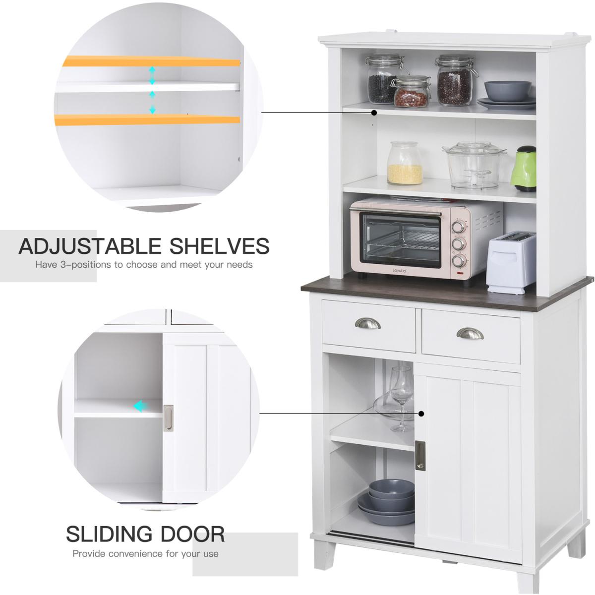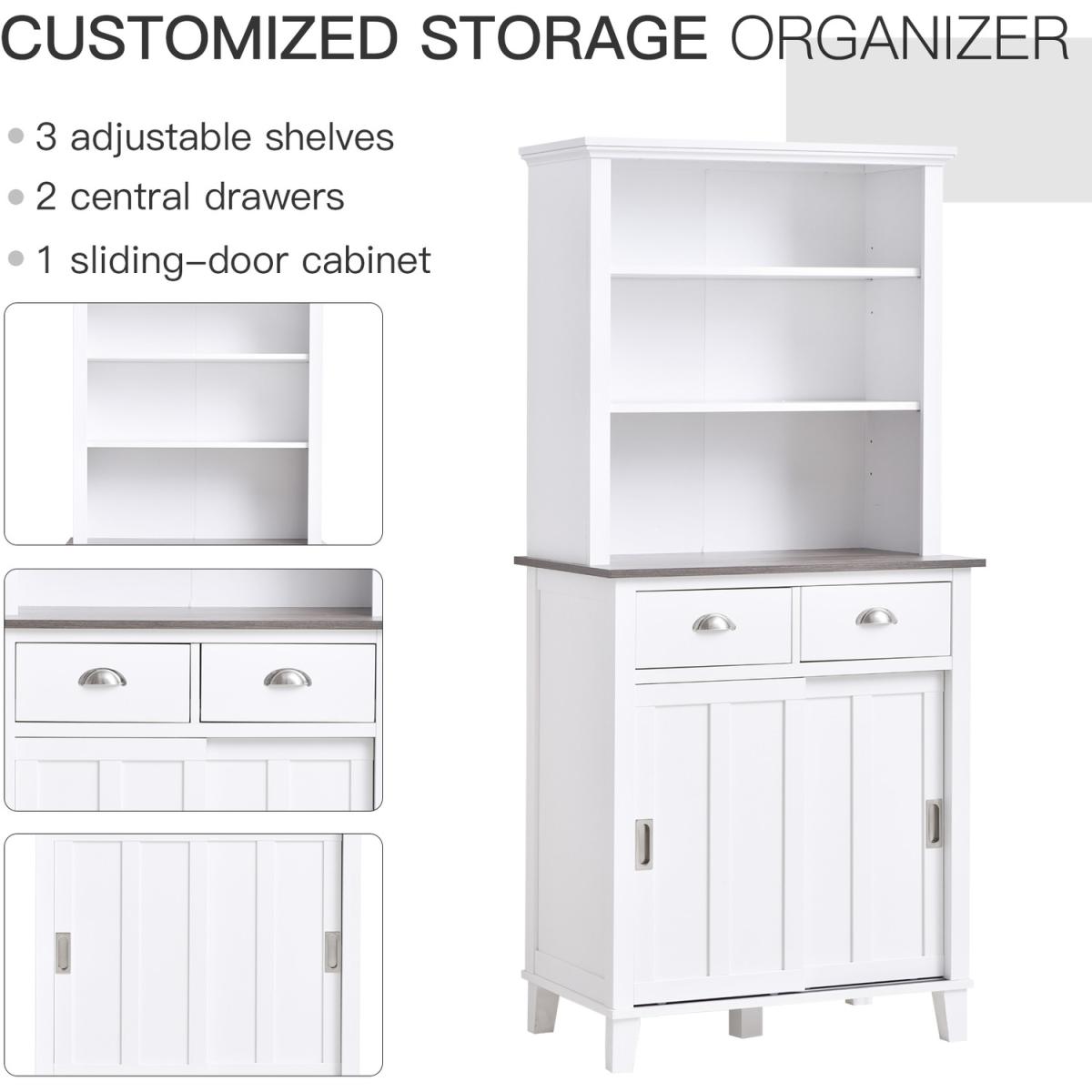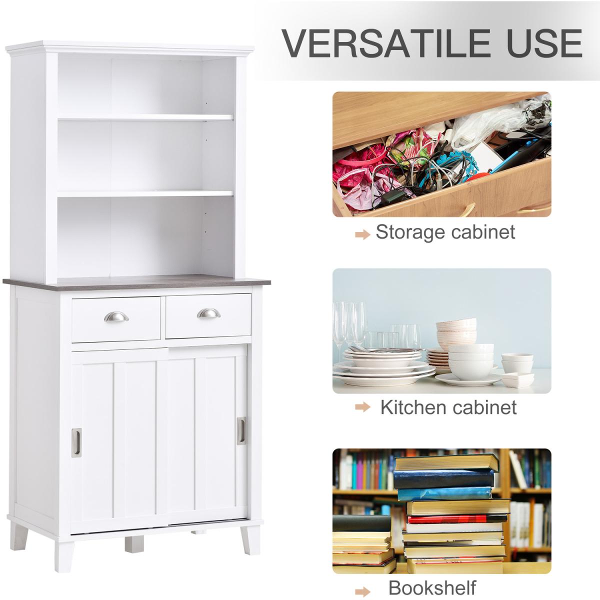 Kitchen Buffet and Hutch with Three Open Shelf Space, Sideboards and Anti-Topple - White