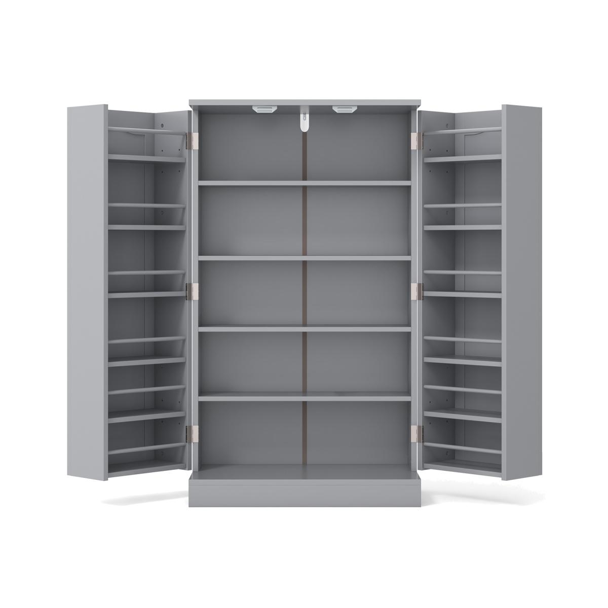 Do you spend your days in a narrow kitchen with very few places to put your kitchen supplies? Then add extra storage space to your kitchen or dining room with our multi-purpose kitchen pantry cabinet. This cabinet consists of 17 storage shelves, 12 of which are mounted on the doors, greatly saving space. The 6-height adjustable shelves can be adjusted to 18 fixed positions, allowing you to customize the appropriate storage space according to the size of the items. Therefore, this cabinet helps you organize your kitchen items and prevents clutters.