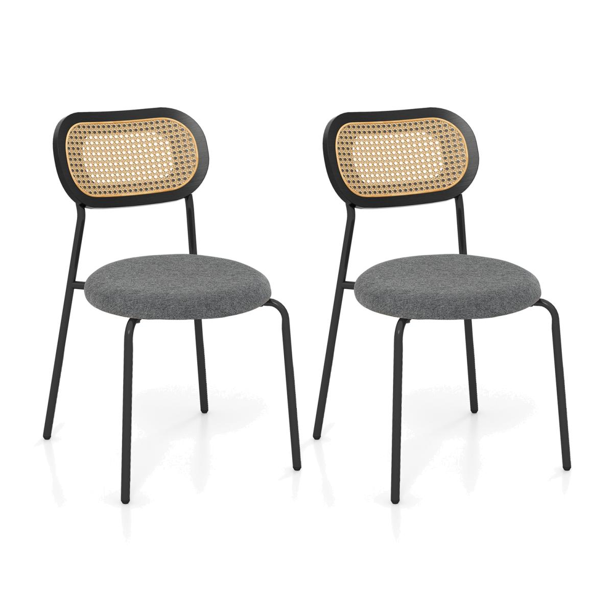 The rattan padded dining chair set includes 2 chairs and each chair measures 46 x 54 x 79 cm (L x W x H). The chair features a hand-woven rattan backrest with an ergonomic curved design, which provides comfy support while ensuring good ventilation. To maximize your comfort, the seat and backrest adapt breathable liner fabric and thickened sponge filling, thus you will not feel tired after long-time sitting.