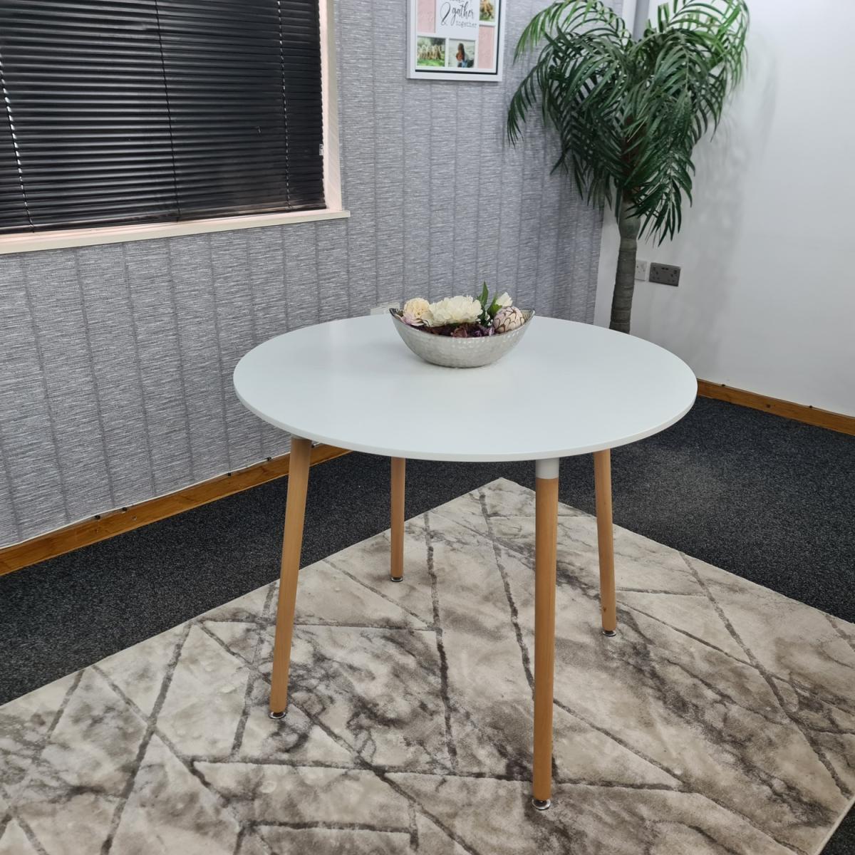 I’m a fan of this round white kitchen table for its clean lines and light, airy feel. The simple top and gentle bevel blend effortlessly into Scandi, minimalist or contemporary schemes, while the beech-tone legs add a touch of warmth. Its compact shape makes it ideal for smaller kitchens or breakfast nooks without overwhelming the space. To style, keep clutter at bay: a low-profile bowl of fresh fruit or a small plant works well in the centre. Pair with slim-profile chairs in natural wood or mix in a couple of upholstered seats for contrast. A neutral rug underneath can define the dining spot, especially in open-plan layouts.