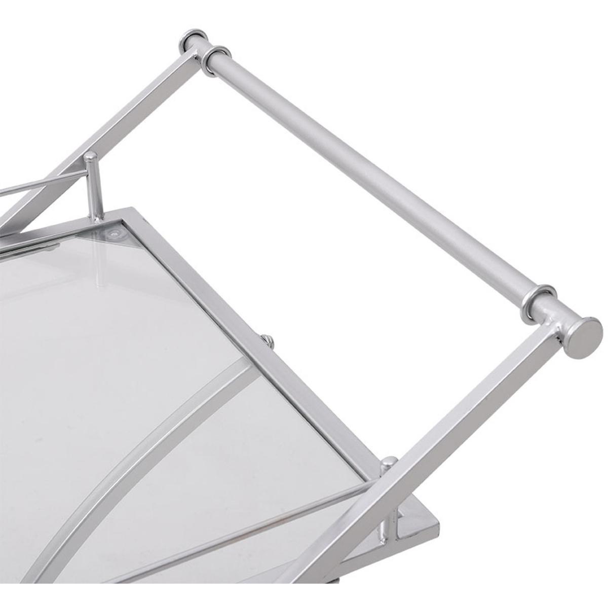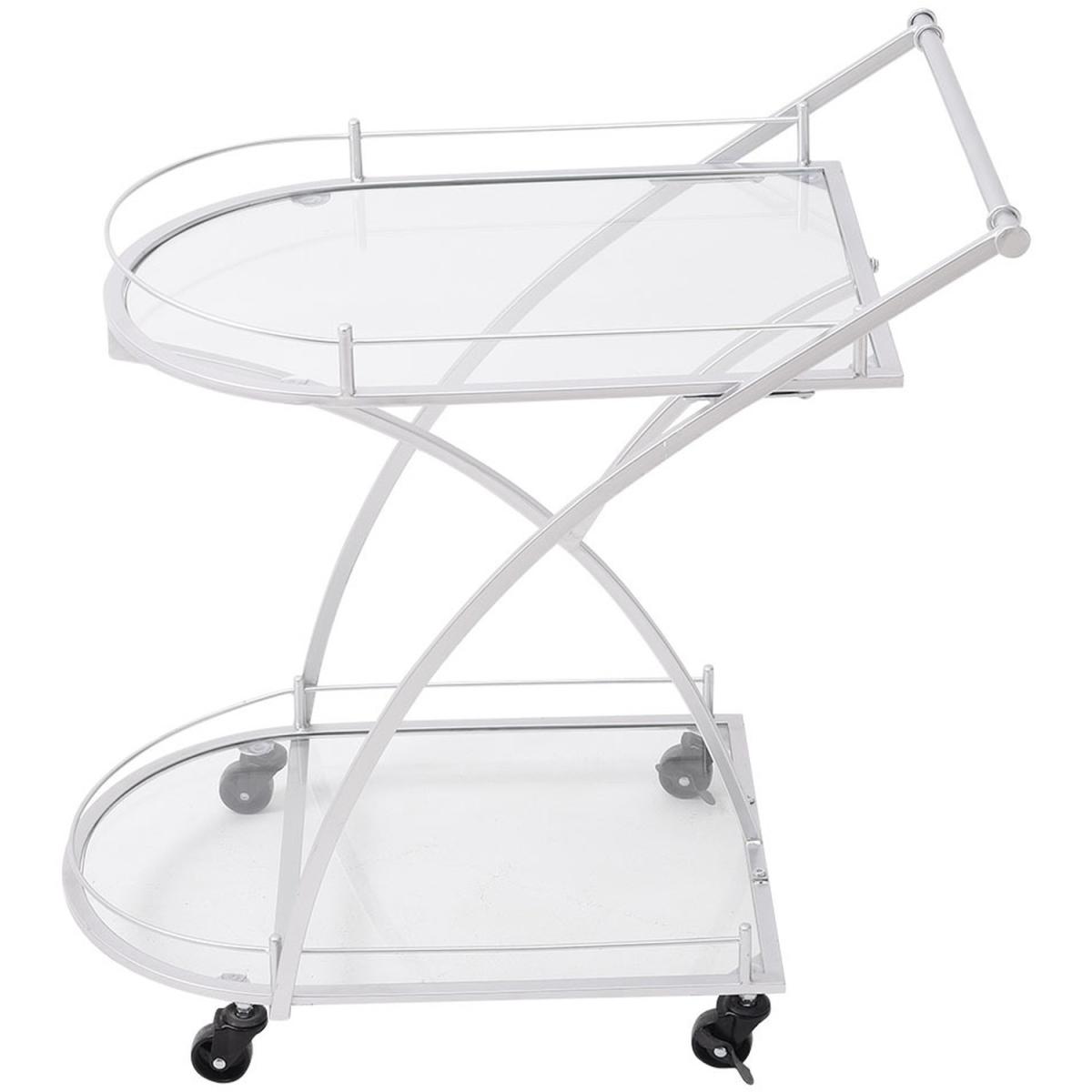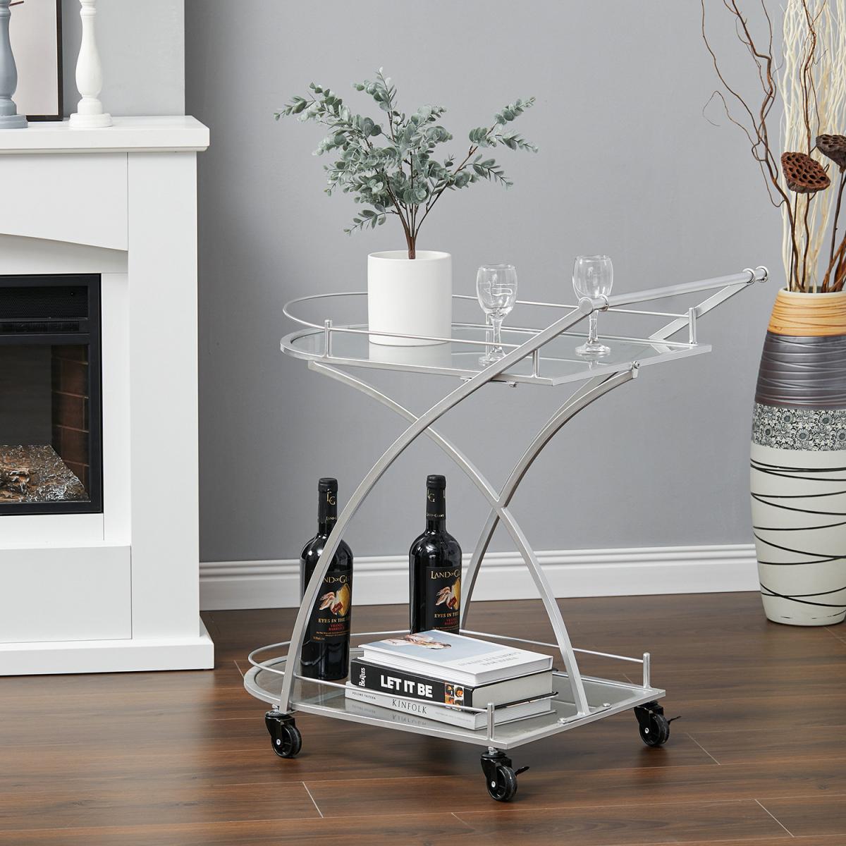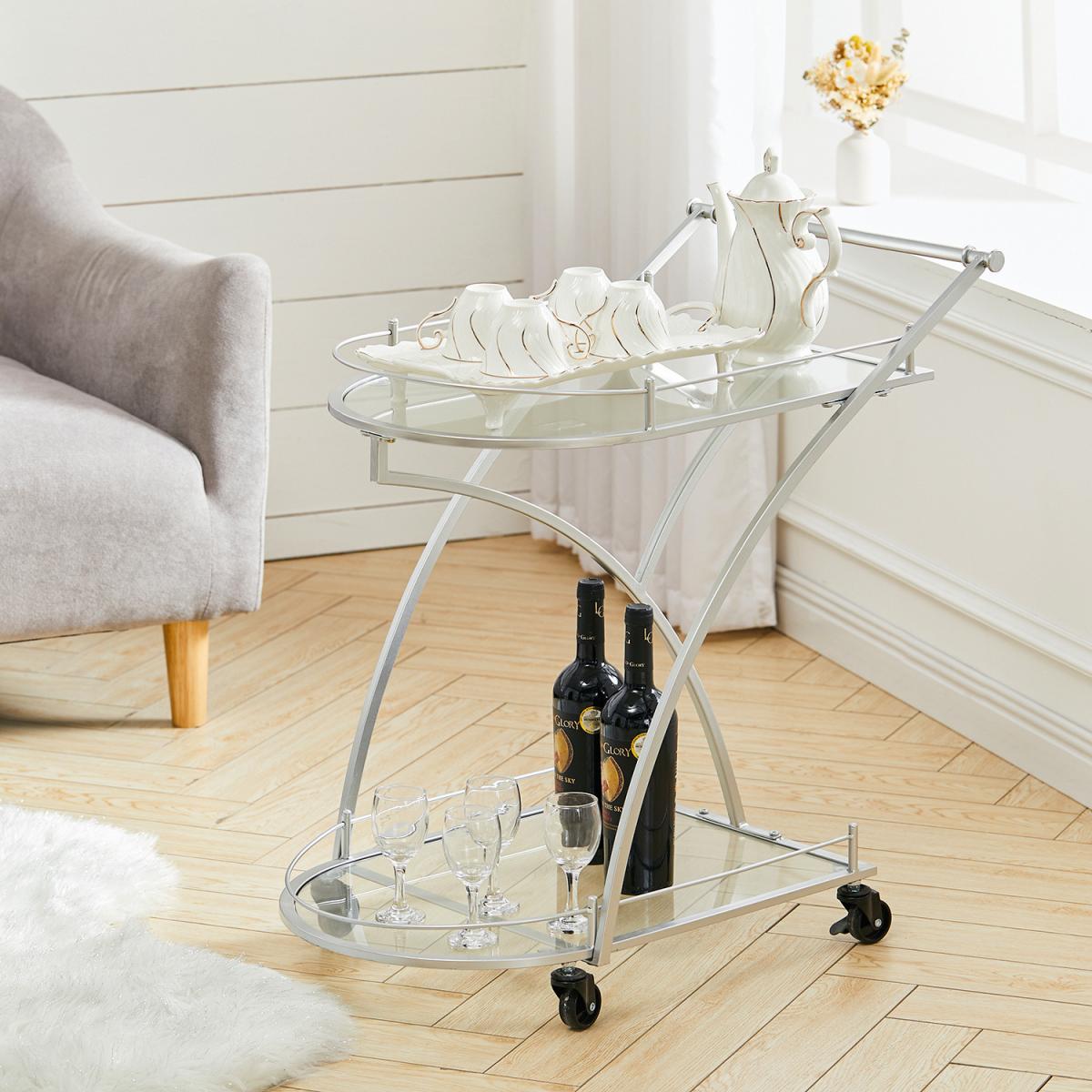 Tempered glass shelf trolley, compared to ordinary glass, it is safe to use and child-friendly. When it is broken, it will be broken into small particles, rather than broken into jagged pieces like flat glass. The cart has 4 universal casters for easy movement. Moreover, the two wheels have brakes, which can prevent the dining car from slipping. Luxurious design, stylish silvery finishes and glass shelves, add a gorgeous atmosphere to your home, hotel or office. The product is in flat packaging, with detailed instructions, product installation is convenient and quick. It is very suitable for serving drinks, coffee and tea. This modern service trolley is the perfect complement to any kitchen and living room.