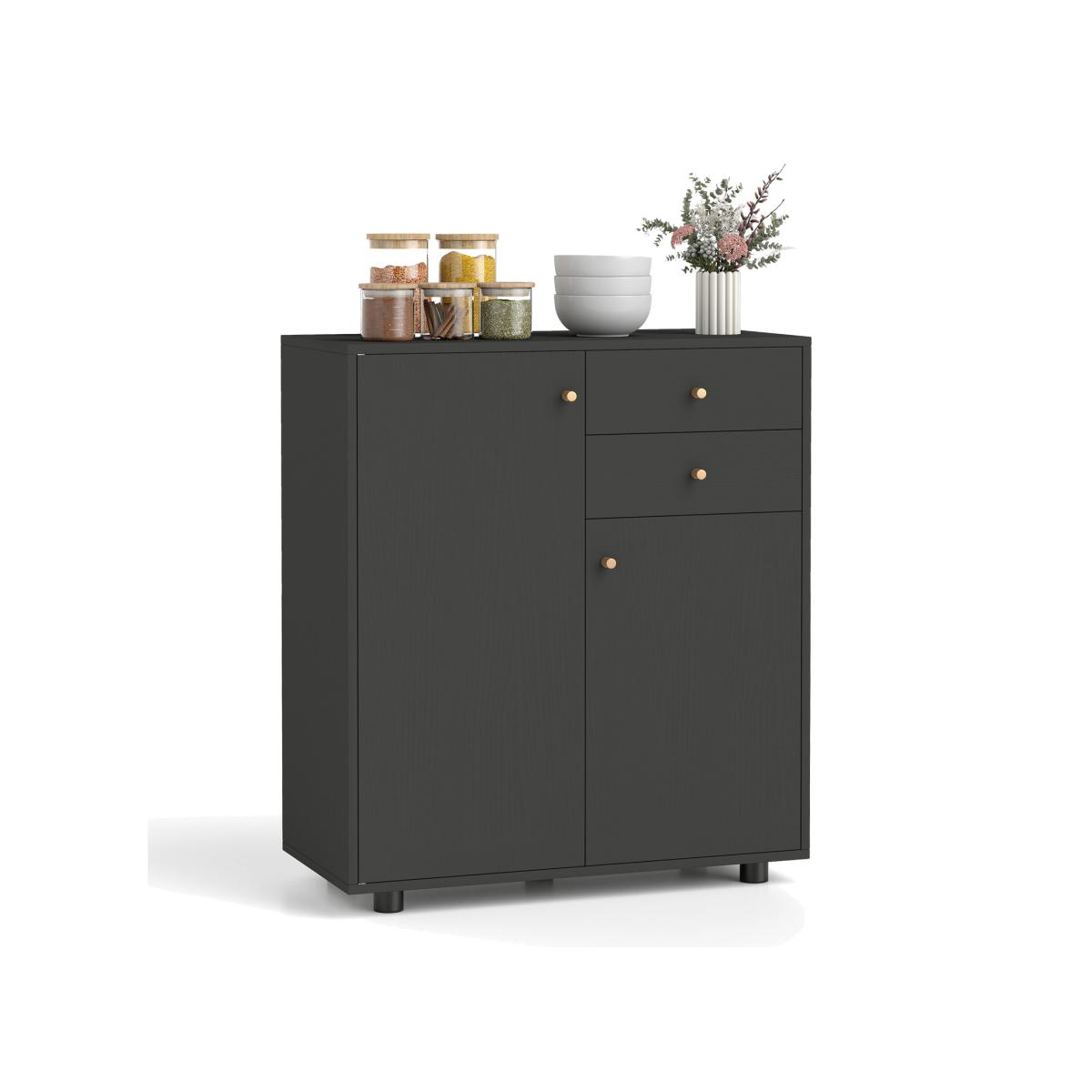 Enhance your home organization and decoration with this coffee station cabinet. This kitchen buffet cabinet features a robust wooden construction that ensures stable support and long-lasting durability. It includes 3 adjustable shelves with 5-level height options that can also be removed, providing customizable space for various items. Additionally, the wide countertop and 2 pull-out drawers offer more storage space. The farmhouse cabinet is equipped with anti-toppling devices for added safety in busy households. With its clean white finish and wood-like surface, the buffet cabinet with storage brings modern farmhouse charm to any room.