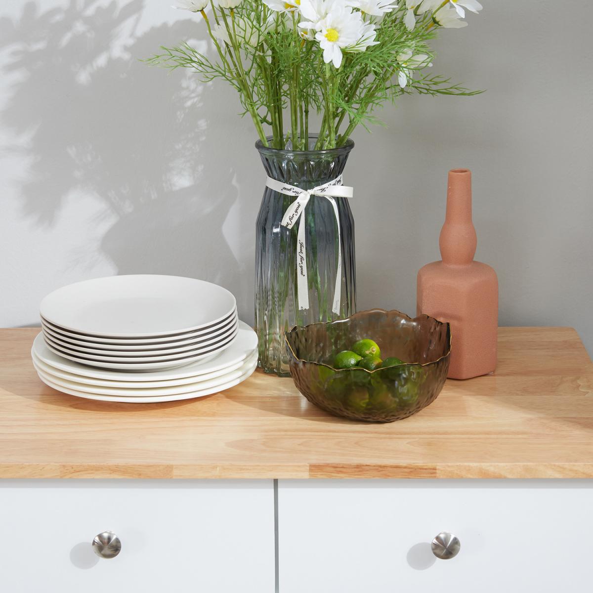 I’m a big fan of this white storage cabinet with its warm rubberwood top because it balances clean lines with a touch of natural texture. Its compact footprint and classic colourway make it a great fit for Scandi-inspired kitchens, coastal homes or modern farmhouse schemes, while the solid top and neat cupboard doors keep clutter out of sight. For styling, use the surface for daily essentials - think a small tray for oils, a cutting board and a pot of fresh herbs - and keep the knobs polished to enhance the cabinet’s crisp look. Inside, stow away appliances or dinnerware; you could also add baskets or labelled boxes to make tidying effortless and elevate its practical appeal.