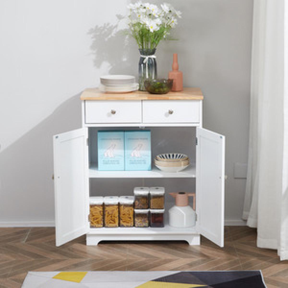 Kitchen Storage Cabinet with Rubberwood Top - White