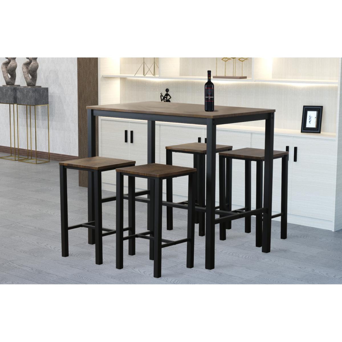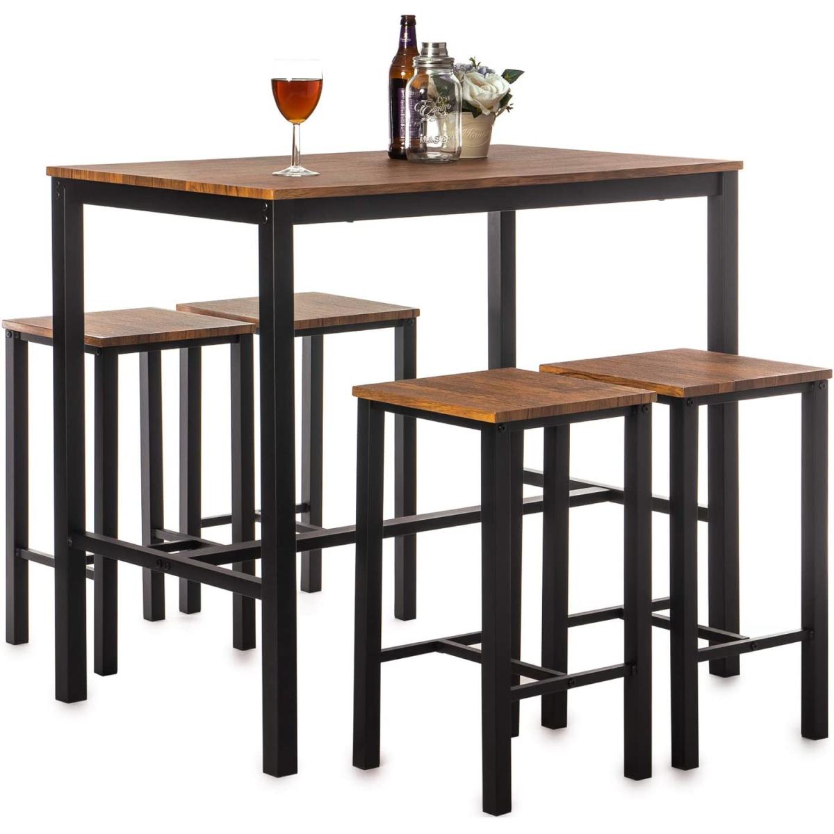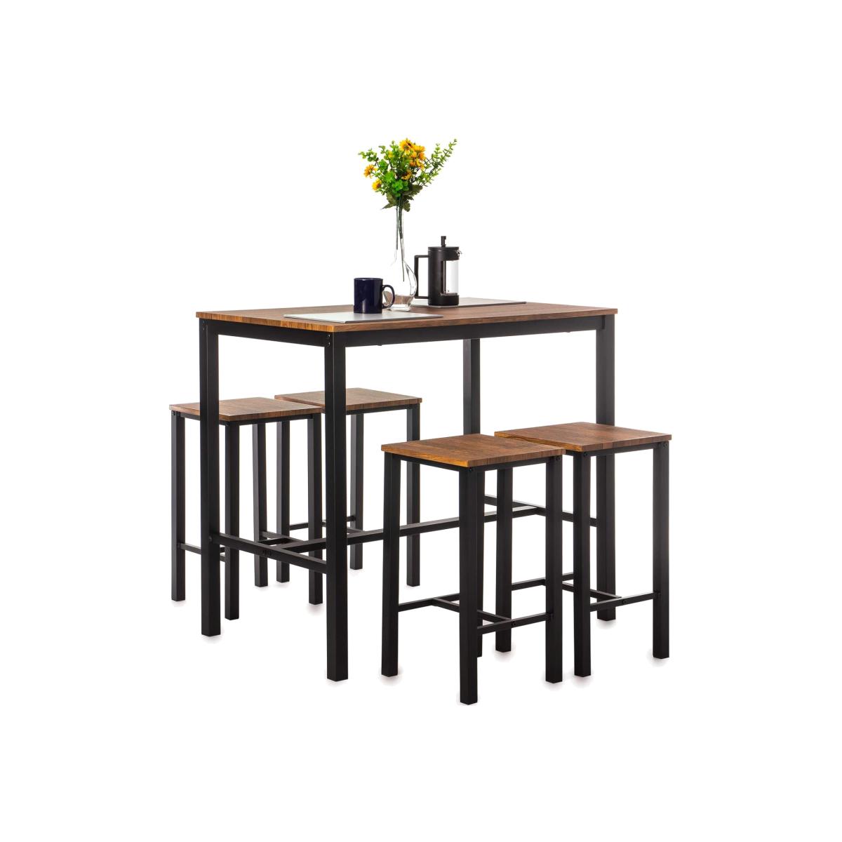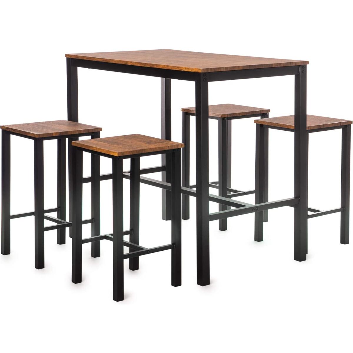 Kitchen Table and 4 Bar Stool Dining Set - Brown