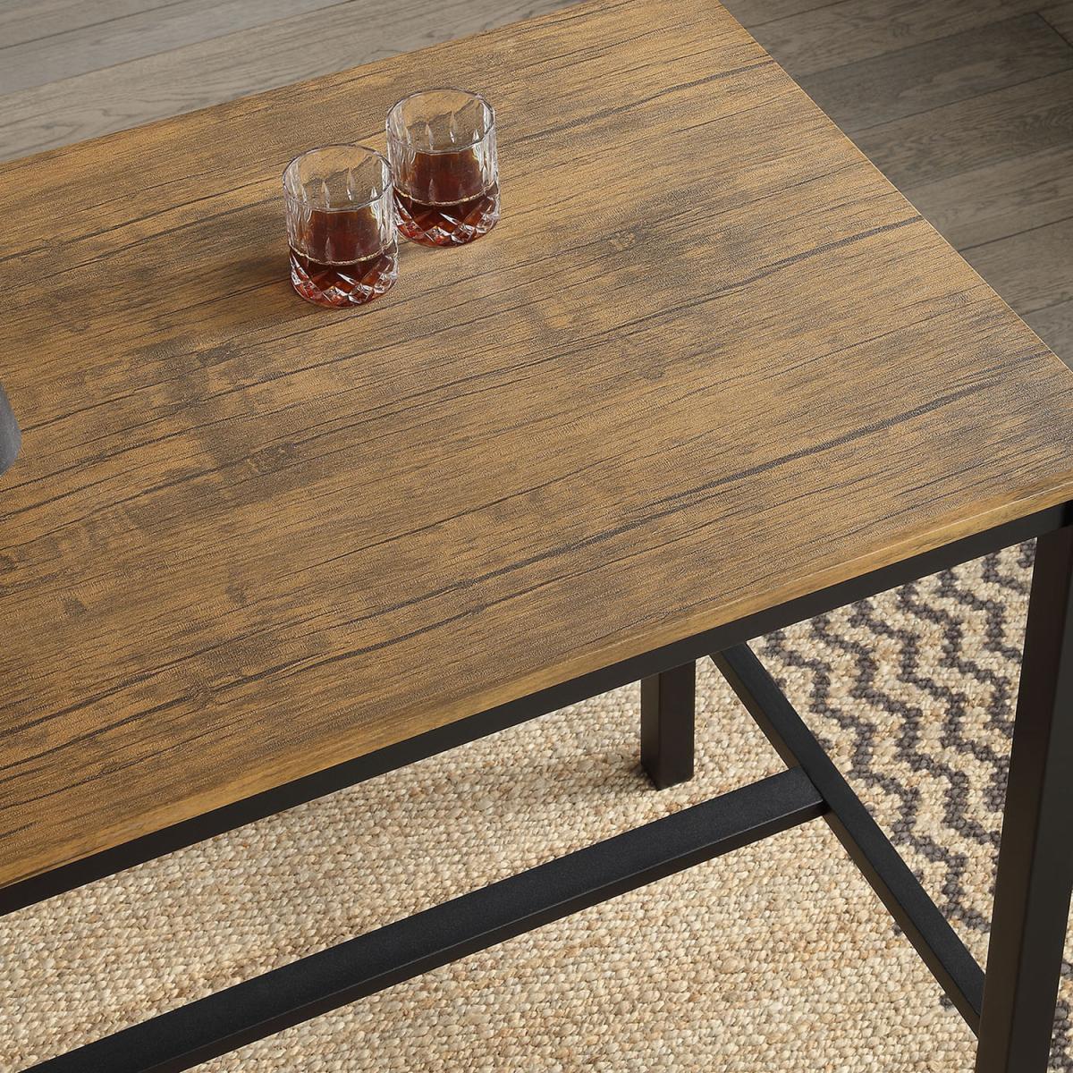Contemporary Bar Table and Stool sets with a rustic Walnut brown finish and black metal frame. Start dining in style with these bespoke Table and Stool sets. A very stylish addition to any Kitchen, Dining Room, Living room, or Conservatory. The modern design features a Walnut brown finish and black metal frame to become a centerpiece in any room. Made from sturdy 18mm MDF Board and Black powder coated Metal frame to ensure high quality and durability of home life.