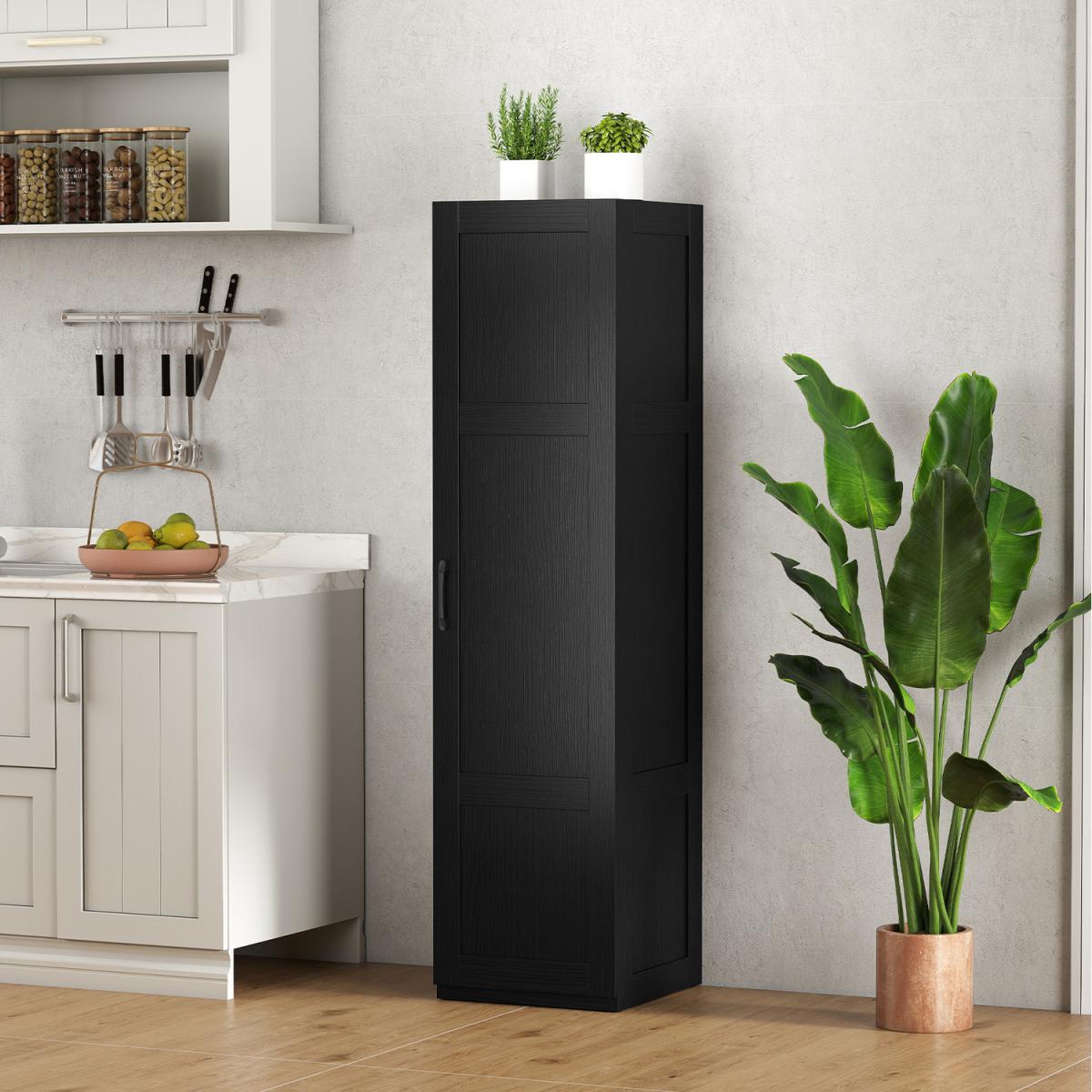 Organise effortlessly with this 4-tier freestanding storage cabinet. Suitable for stowing versatile items, this freestanding cabinet combines functionality with aesthetic appeal. Despite the narrow 40 x 37 x 150cm footprint, the pantry cabinet offers 4-tier expansive storage, making efficient use of tight spaces. Plus, this slim cabinet includes non-slip foot pads and anti-toppling devices, ensuring steadiness and safety. The thickened wooden boards also endow this kitchen cabinet with strong stability.