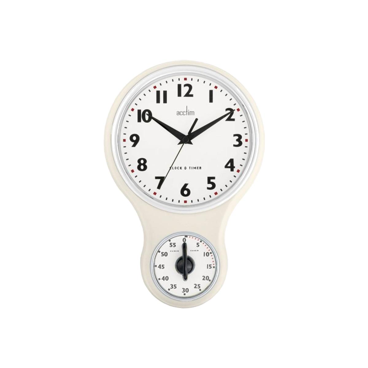Going back to 1929, Acctim have become one of the UKs most popular clock brand names. Acctim continue to develop wall clocks and alarm clocks that follow the most recent styles, whilst also producing a beautiful variety of long-established looking designs for that nostalgic feel. Based in Newport Pagnell, Buckinghamshire, they have a skilled in-house team that have the ability to collaborate to produce terrific looking clocks. Retro style kitchen clock One hour mechanical timer Plastic case and glass lens Precision quartz movement Dimensions: 300 x 195 x 50mm