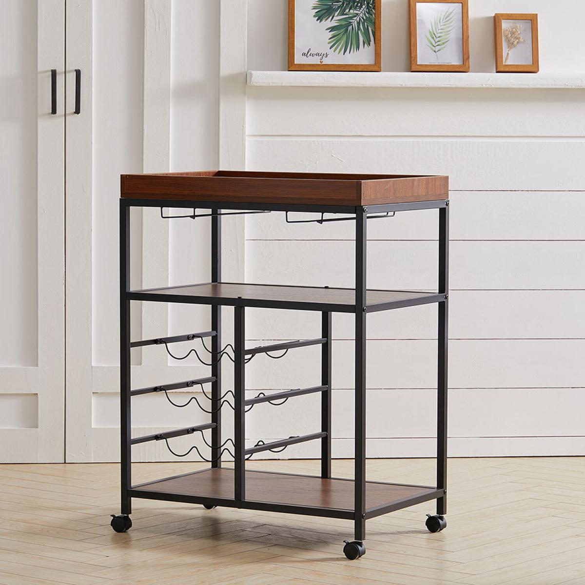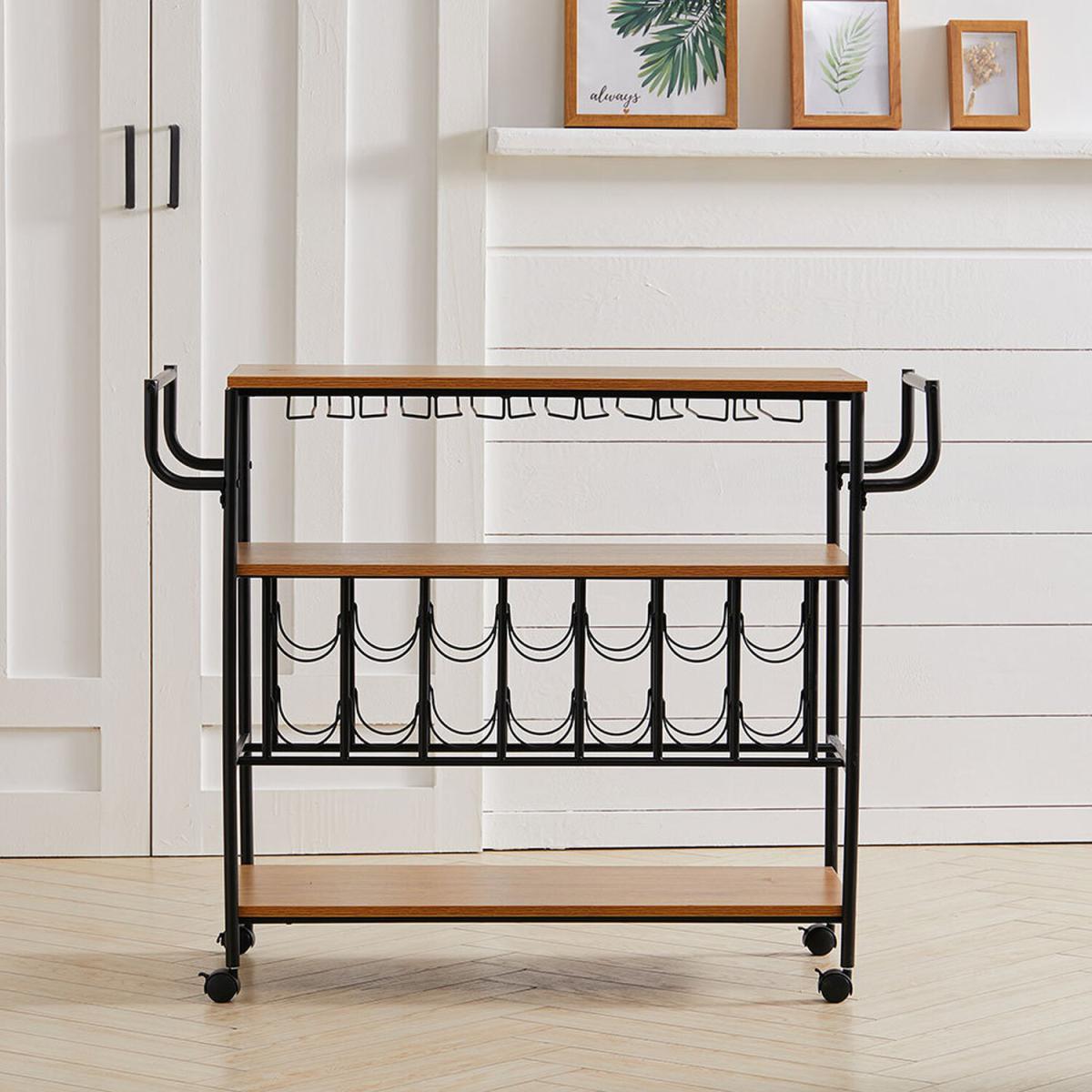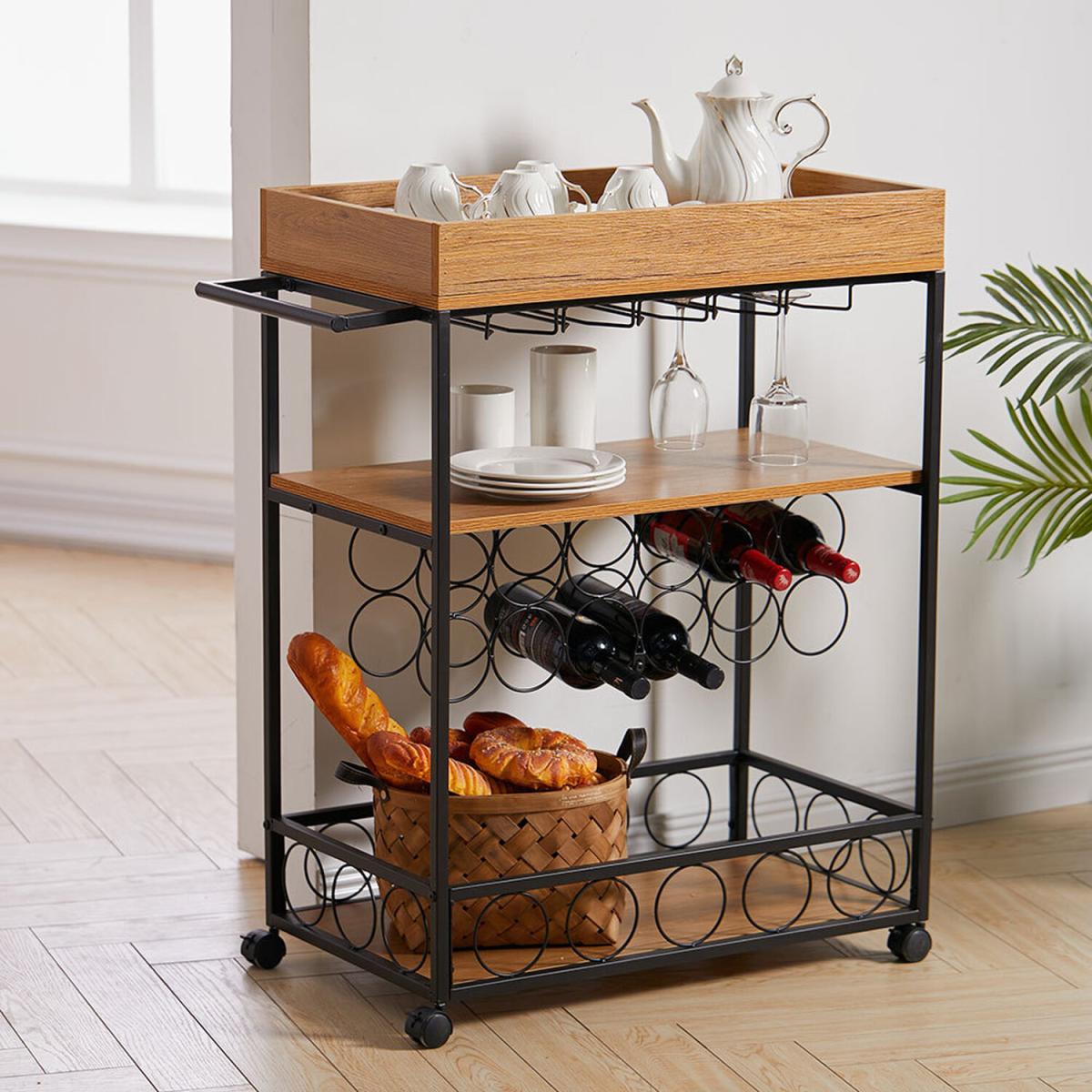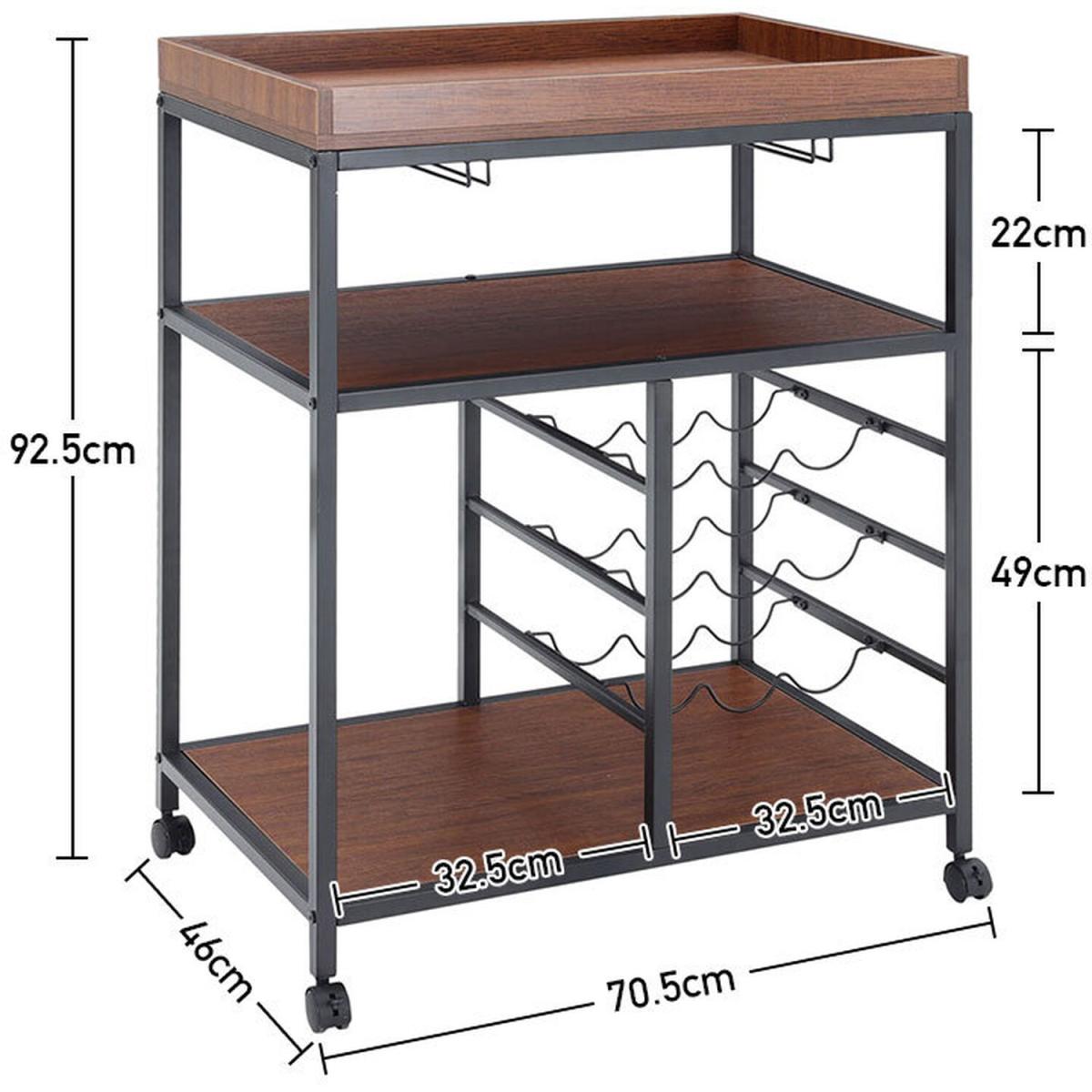 The versatile cart makes a great choice for the kitchen to store pantry items, mixing bowls, and more. Keep everything from your kitchen wares organized and on hand. The tiered utility cart can also be used as a stylish bar in a living room or game room when entertaining. Equipped with fixable feet or four rubber rolling casters, the cart is easy to move and protect the floor from scratching. The whole frame is constructed of strong iron to ensure sturdiness and each sturdy shelf can hold up to 28 pounds for a long time. This practical cart comes with detailed instructions and all required accessories.