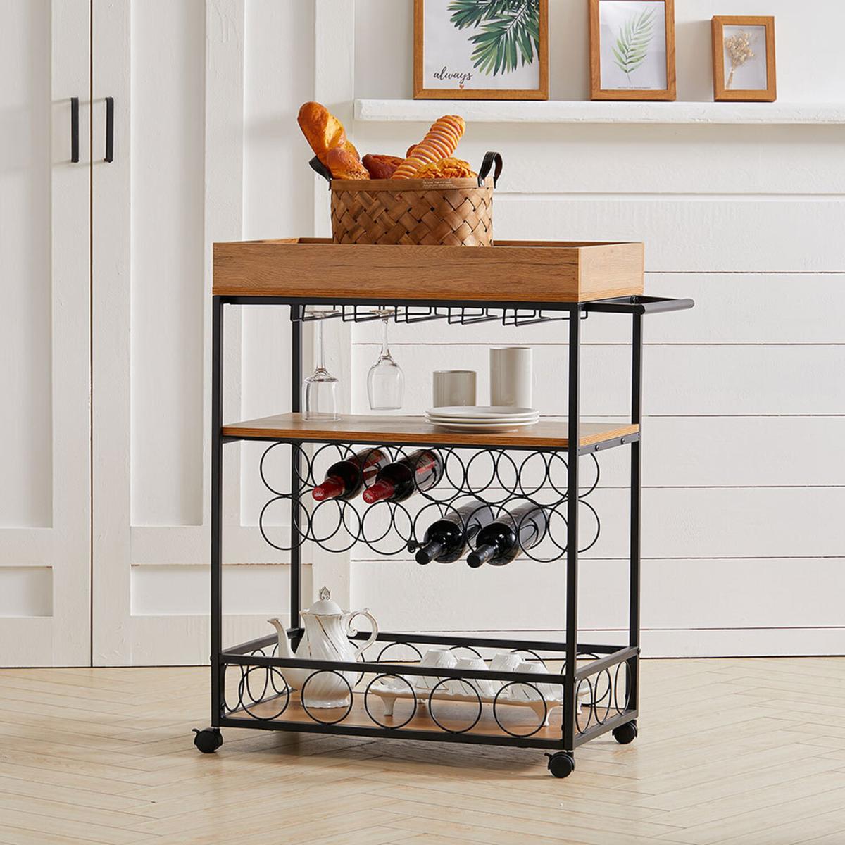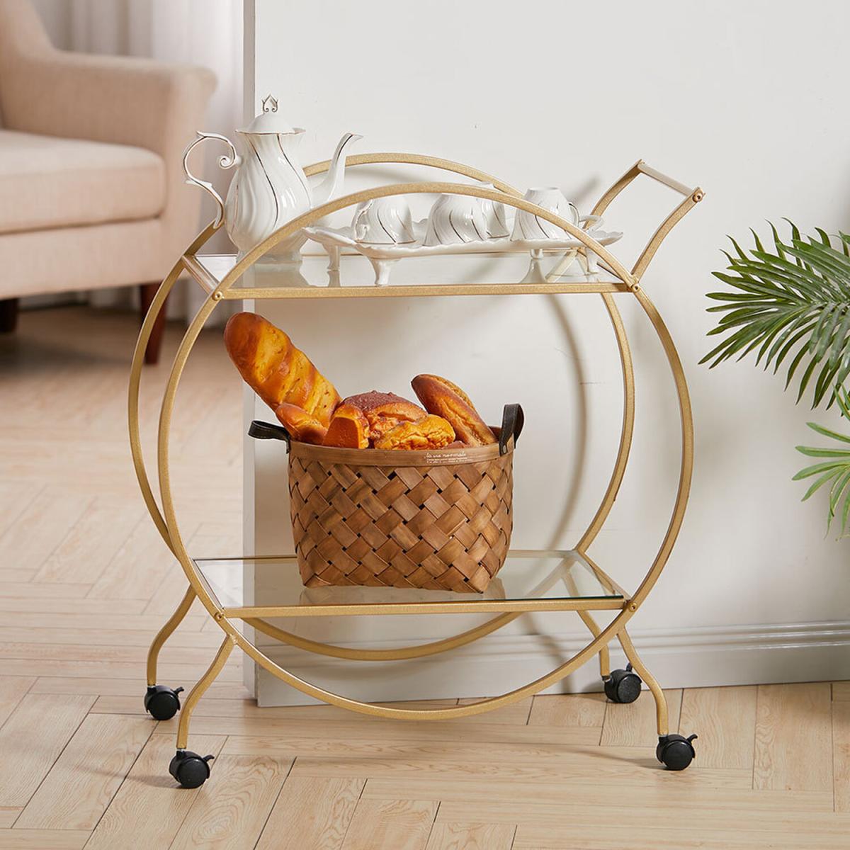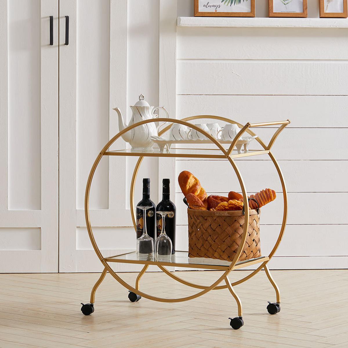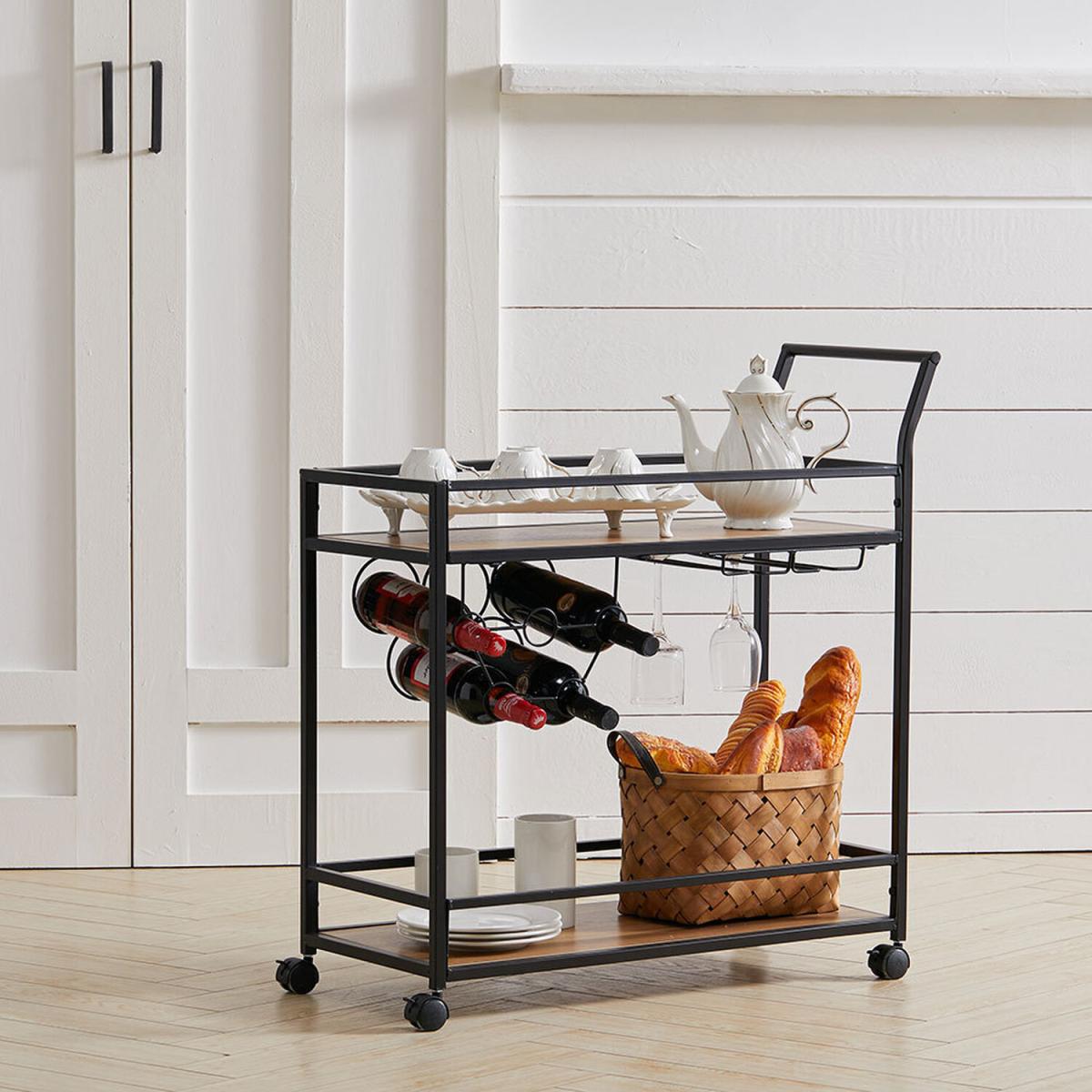 The versatile cart makes a great choice for the kitchen to store pantry items, mixing bowls, and more. Keep everything from your kitchen wares organized and on hand. The tiered utility cart can also be used as a stylish bar in a living room or game room when entertaining. Equipped with fixable feet or four rubber rolling casters, the cart is easy to move and protect the floor from scratching. The whole frame is constructed of strong iron to ensure sturdiness and each sturdy shelf can hold up to 28 pounds for a long time. This practical cart comes with detailed instructions and all required accessories.