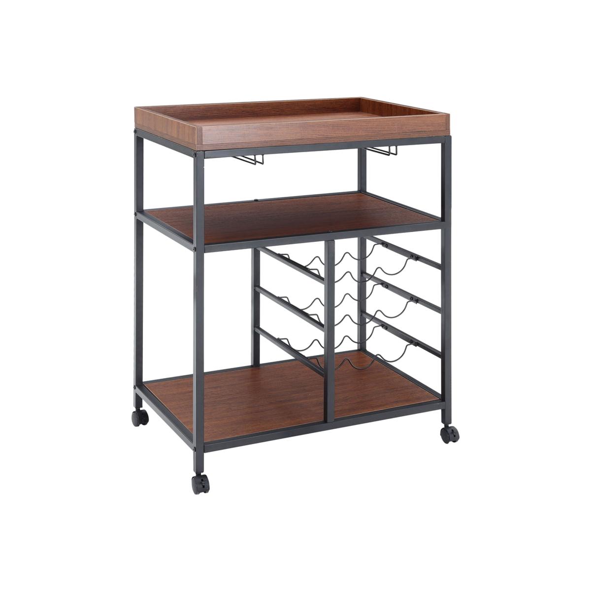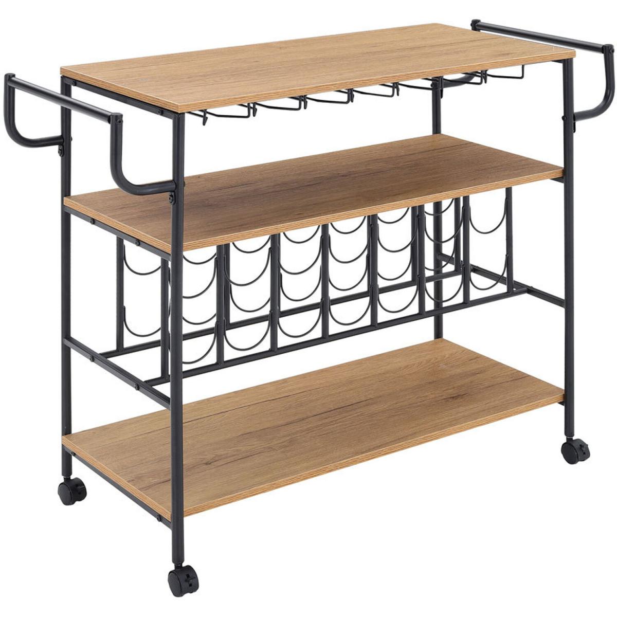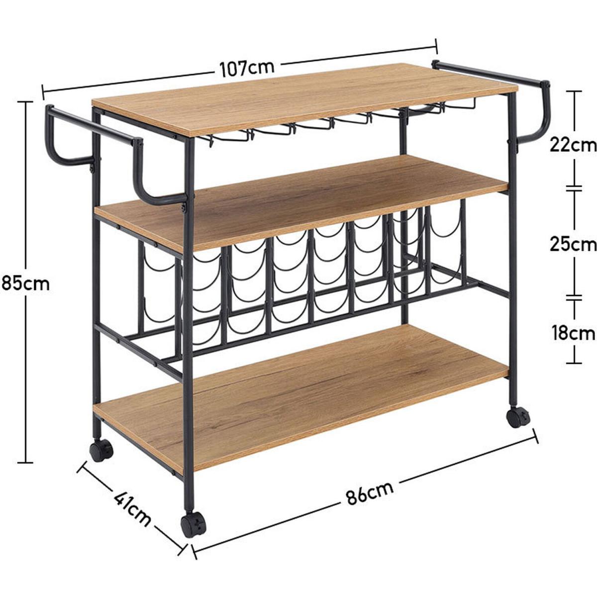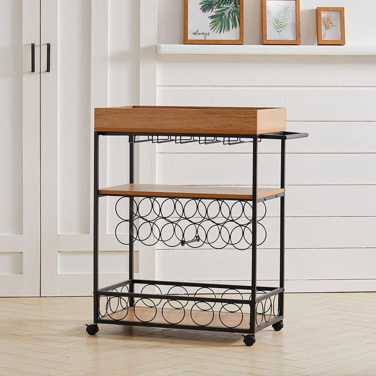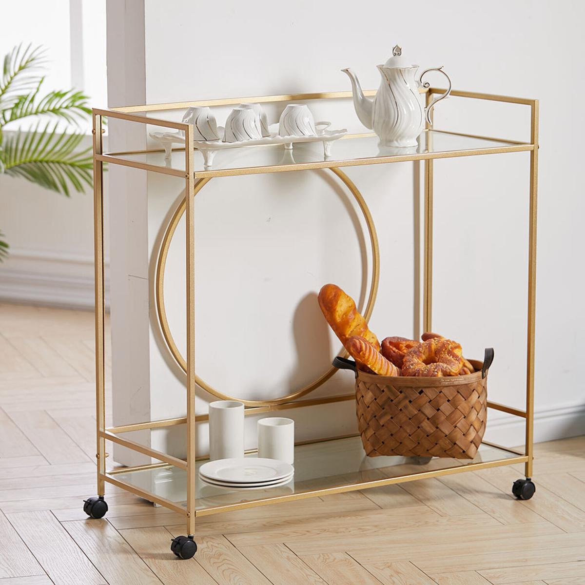 The versatile cart makes a great choice for the kitchen to store pantry items, mixing bowls, and more. Keep everything from your kitchen wares organized and on hand. The tiered utility cart can also be used as a stylish bar in a living room or game room when entertaining. Equipped with fixable feet or four rubber rolling casters, the cart is easy to move and protect the floor from scratching. The whole frame is constructed of strong iron to ensure sturdiness and each sturdy shelf can hold up to 28 pounds for a long time. This practical cart comes with detailed instructions and all required accessories.