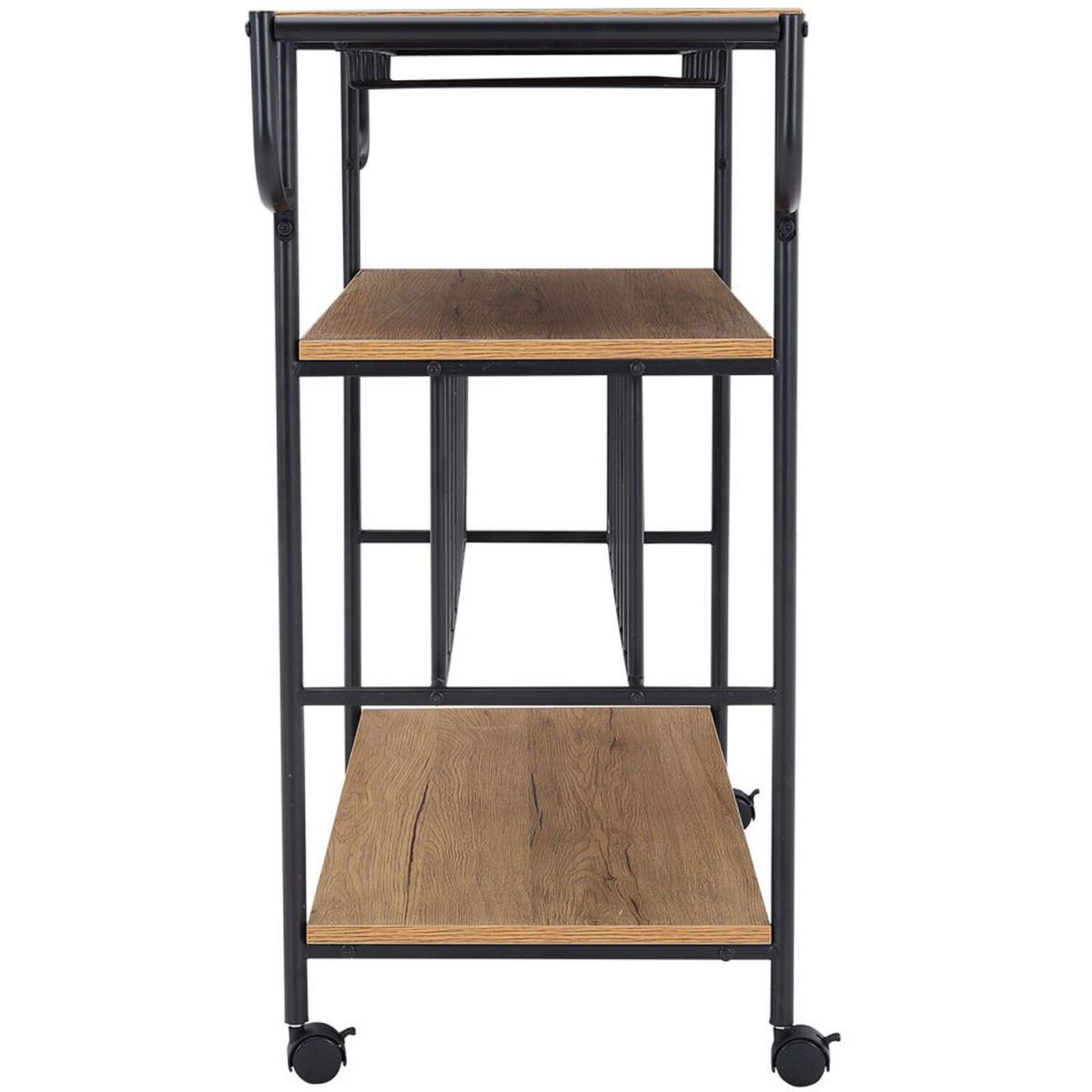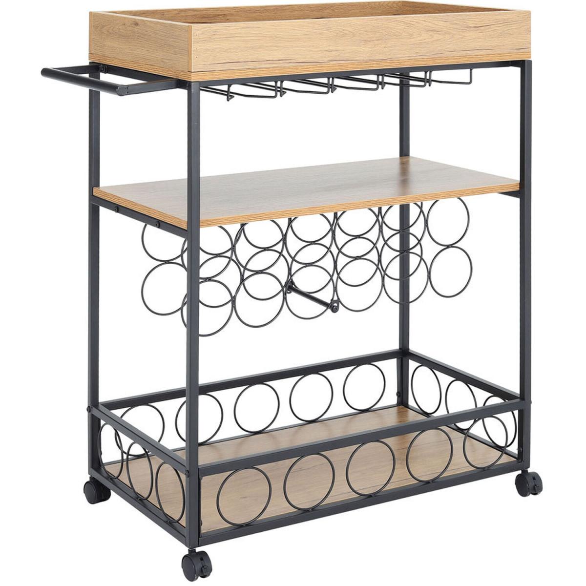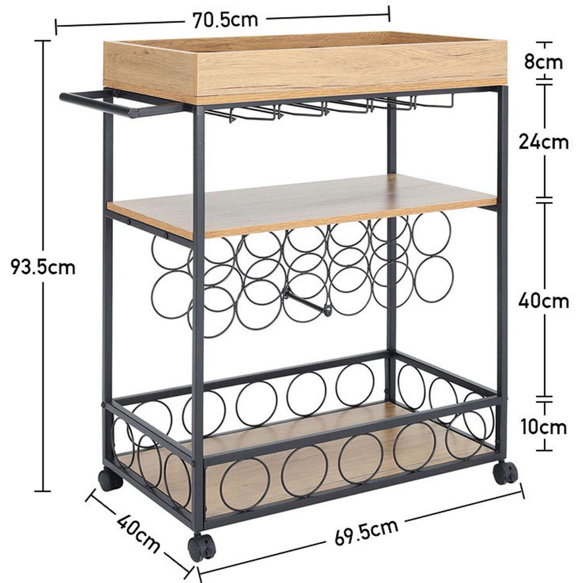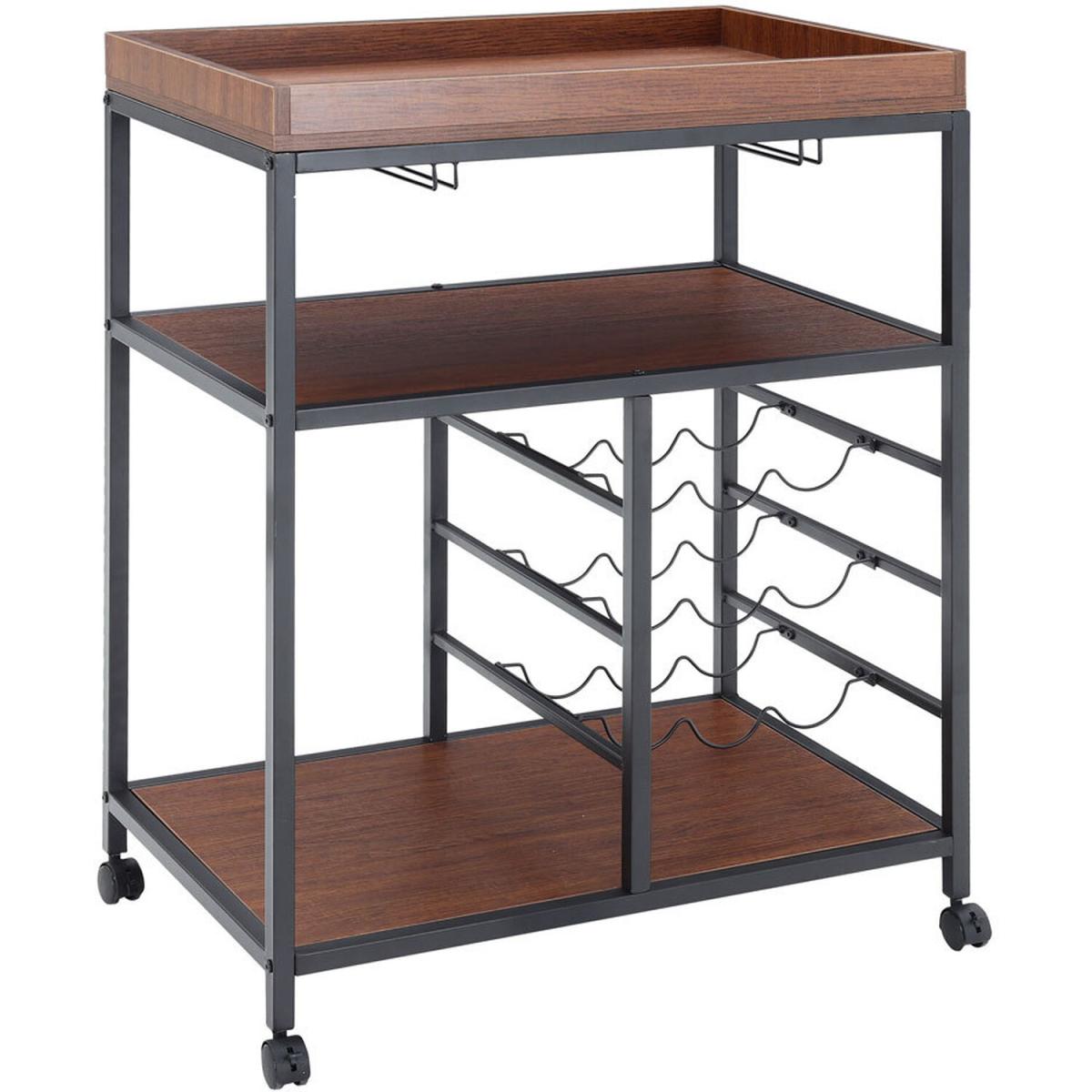 The versatile cart makes a great choice for the kitchen to store pantry items, mixing bowls, and more. Keep everything from your kitchen wares organized and on hand. The tiered utility cart can also be used as a stylish bar in a living room or game room when entertaining. Equipped with fixable feet or four rubber rolling casters, the cart is easy to move and protect the floor from scratching. The whole frame is constructed of strong iron to ensure sturdiness and each sturdy shelf can hold up to 28 pounds for a long time. This practical cart comes with detailed instructions and all required accessories.