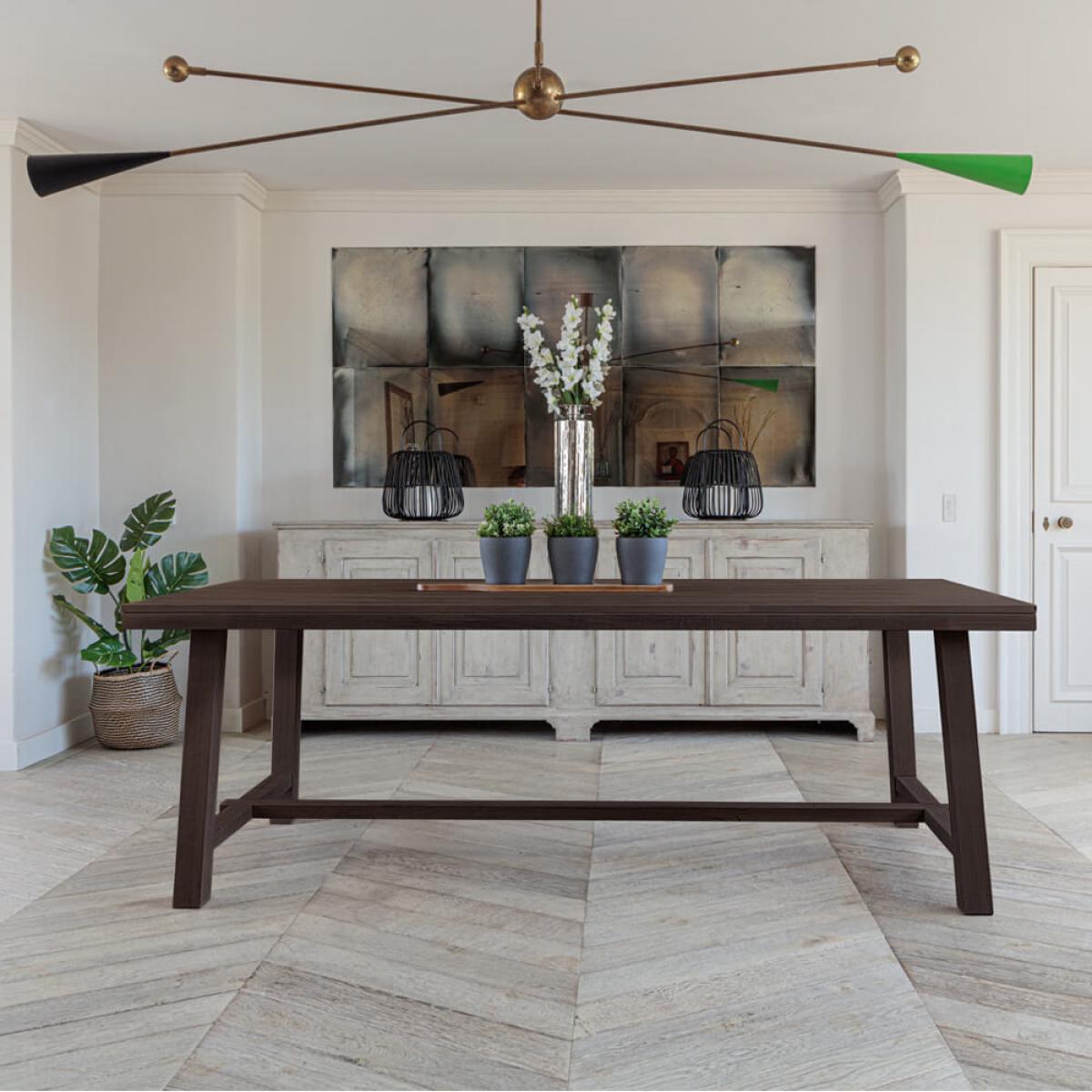 This spacious and stylish timber solid oak dining table boasts looks and practicality. With the purchase of a. Kitsilano Extension Leaf. This oak table goes from an already lengthy 2. 2 metres to 2. 7, and again adding another leaf will boost it to 3. 2 metres. Meaning at its most extended it will accommodate an impressive 12 people, perfect for large family gatherings. The table top is finished in an attractive moody dark brown oak shade and given a sumptuous lacquer coating. This dining surface is finger jointed for both design appeal and increased quality. Clearly this solid oak furniture takes it cues from modern Nordic furniture, sleek tapered legs form undeniable visual grace whilst a supporting ballast bar beneath stabilises the table. The oak has been sourced from fully certified. FSC. Origins, and therefore comes from properly managed sustainable forests. This wood dining furniture will fit nicely into all types of decor. We think many seating options will pair with this modern dining table however perhaps the best suited is the Brunswick collection. Available as a. 1. 7 metre version. Alternatively, purchase one of our. Pre-determined Kitsilano dining sets. To benefit from 10% off. Best paired with the Brunswick dining seating collection available to view. Here.