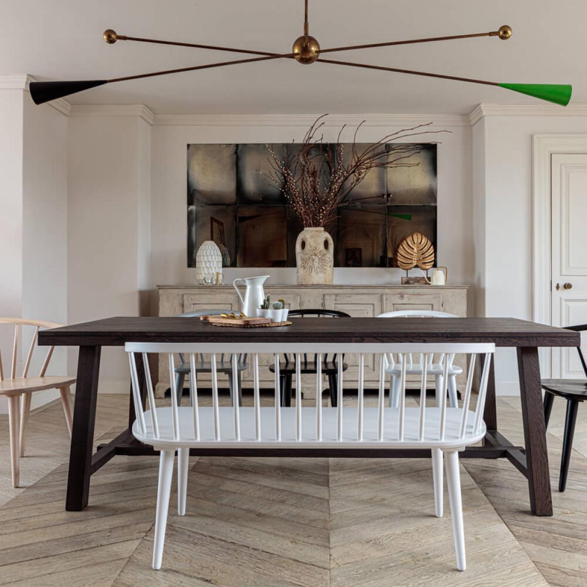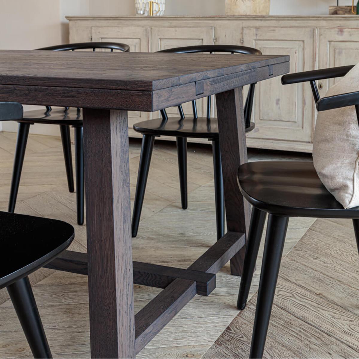 Represents a 10% saving when purchased as a set!. 2. 2m metre Kitsilano Dark Brown table set consists of:. Host all the extended family with this extendable dining set. When using the add-on-end extension leaf included in this set, the solid oak dining table goes from an already impressive 2. 2 metres to 2. 7. If you need an even bigger option then there is the option to purchase another. Extension leaf. , (to be purchased separately), which will boost the table size to a whopping 3. 2 metres. In its longest configuration (with 2 extension leaves attached) it can accommodate an impressive 12 people, so you may need to play pass-the-parcel with the gravy boat during meal times!. This beautiful table is finished in a rich dark brown shade and given a tactile yet practical lacquer coating. The oak has been sourced from fully certified. FSC. Origins, and therefore comes from properly managed sustainable forests. The design also benefits from modern Nordic styled tapered legs, adding sleek modern style to the package. A supporting ballast bar beneath stabilises the extending solid oak dining table further. This lengthy modern dining table set is sure to impress whilst it will also stand-up to the practicalities of the day-to-day. Included in the set price is a selection of beautiful and high-quality seating options – The Brunswick 3 person bench and 4 Brunswick dining chairs in varying colours. Brunswick is a style picked for its excellent compatibility with this range. Made of high quality rubberwood they offer stability and classical design. The four chairs included in this set come in different shades; true white, black, whitewash and a light grey and are all lacquer coated for quality. The variation in chair colours really brings this dining set to life. The lovely true white bench offers versatility, too. It could also be placed alone in a hallway or another room in the house. There’s also a possibility to mix and match. Brunswick chair colours. To make your dream set – get in contact with our customer care team to discuss this opportunity. There is a. Whitewash tone Kitsilano dining table. Selection available also, shop all the. Kitsilano Dining Sets. Here.