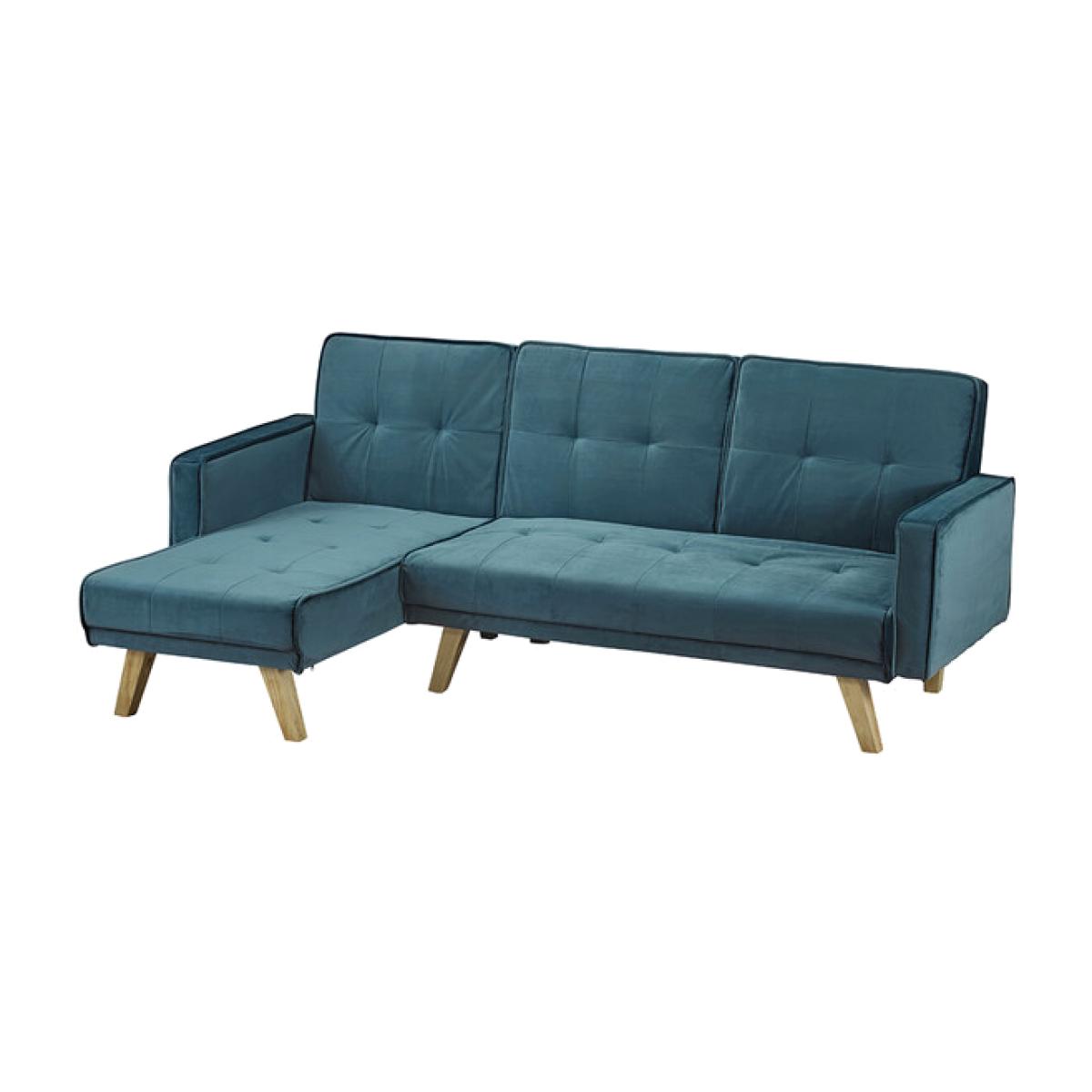 I love the Kitson Corner Velvet Sofa Bed for its vibrant teal tone, which adds a fun splash of colour to both modern and eclectic interiors. Its velvet finish brings a touch of luxury, making it perfect for styling with metallic accents or neutral tones to really make the colour pop. Ideal for smaller spaces or multi-functional rooms, this piece works well in guest bedrooms or cosy living areas where practicality meets style. A tip would be to complement it with patterned cushions or textured throws for added visual interest, and keep the surrounding decor minimalist to let the sofa be the statement piece. Its versatile design allows it to blend seamlessly into diverse schemes, from contemporary to mid-century inspired interiors.