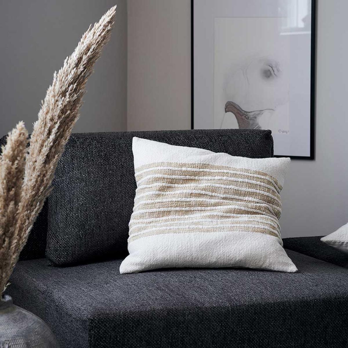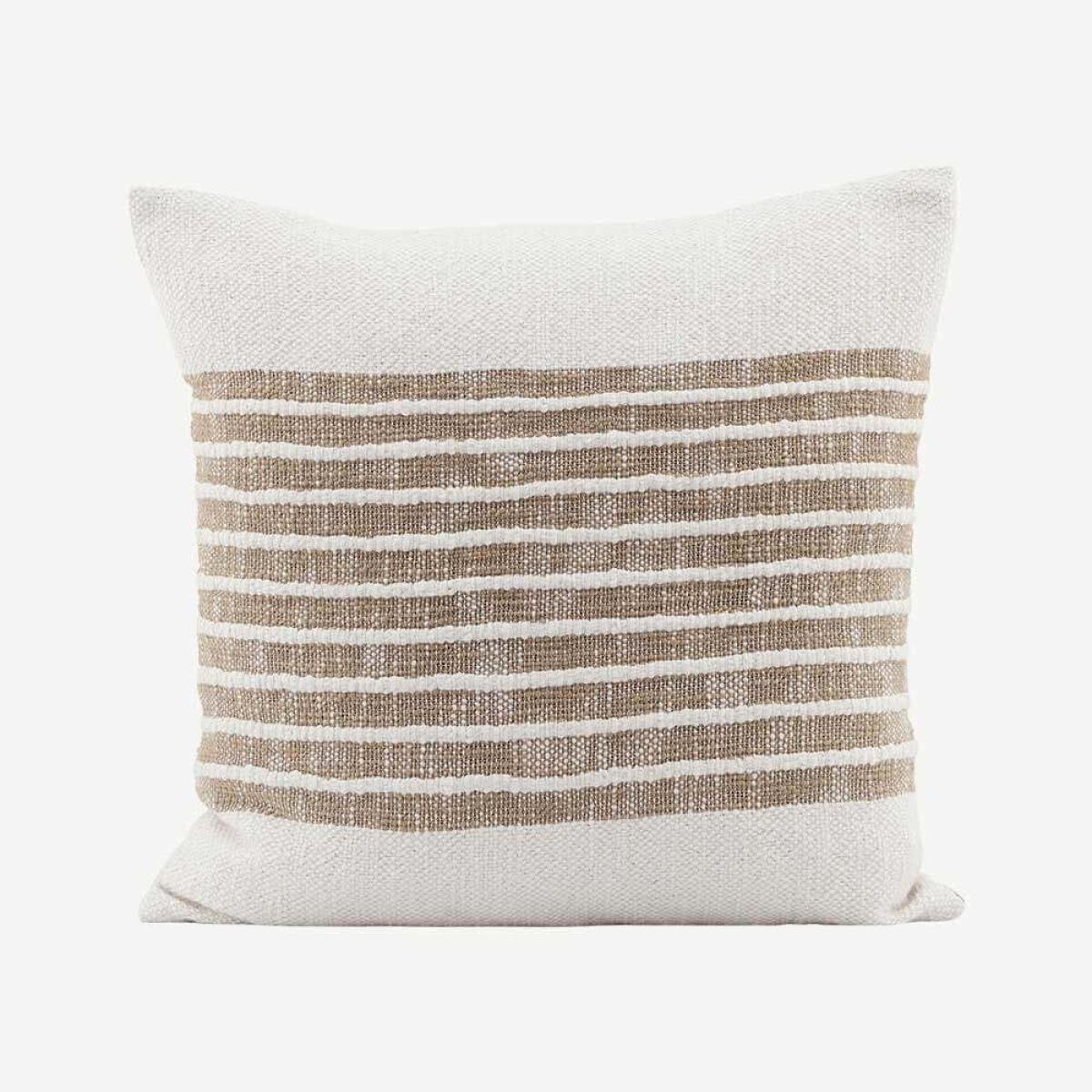 Transform your home with this thick yarn cushion cover that adds a comfortable texture to this cotton cushion cover. The light brown, caramel, striped pattern makes this cushion cover a neutral, and staple addition to your living areas. This is an embellishing addition to your home due to it’s simple, yet stylish pattern.