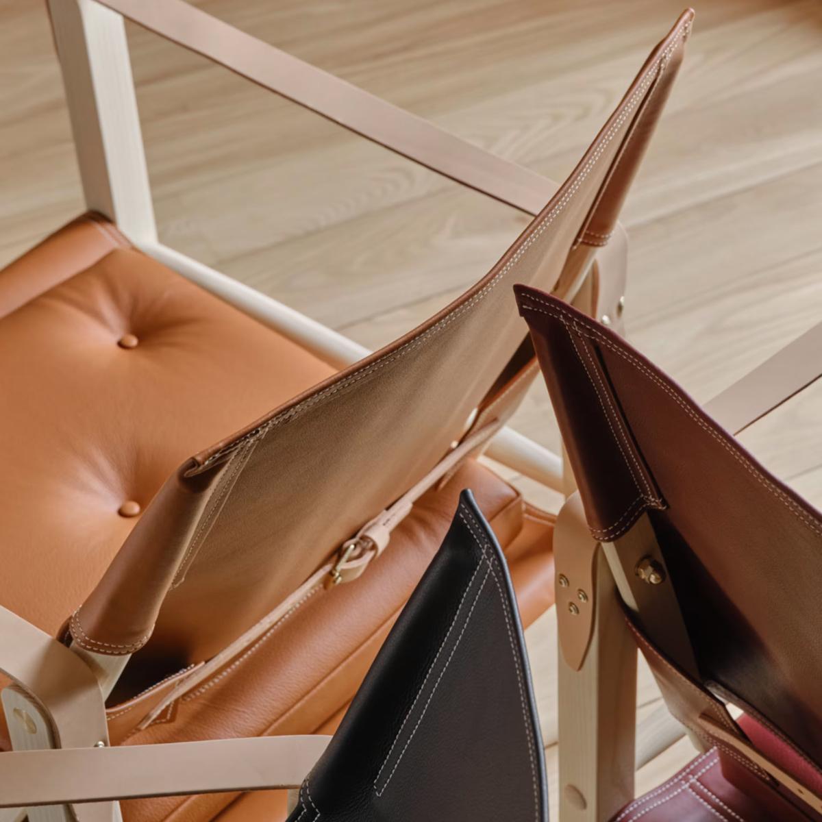 Since 1908, Carl Hansen & Søn has embodied the quintessence of Danish design by combining craftsmanship, quality and innovation. The brand brings together a collection of masterpieces of Scandinavian design: iconic items created by the greatest Danish designers. Handcrafted in Denmark, these pieces with their exceptional quality stand the test of time. With the strictest respect for the original models, Carl Hansen & Søn reissues the legendary creations of the founders of Scandinavian design. Designed in 1933, the Safari Chair is one of the absolute classics by Danish architect and designer Kaare Klint (1888 - 1954), known as the father of modern Danish furniture. The furniture designed by Klint is the result of the meeting between an in-depth study of functionality, proportions adapted to the human body, a thirst for know-how and the use of high-quality materials. The Safari KK47000 armchair is an iconic example of Kaare Klint's design ideology. The designer effortlessly transformed a historic archetype into a modern, folding chair. The Safari chair is inspired by the Indian Roorkhee chairs used by the British army – perhaps the first examples of self-assembled furniture. Klint focused on simplifying, clarifying and refining the construction. Sophisticated and light, the Safari armchair is defined by its well-designed proportions and remarkable material effects: solid wood and leather. The Safari KK47000 armchair by Kaare Klint is much more than just a piece of furniture: it's a functional work of art that embodies the heritage of Danish design.