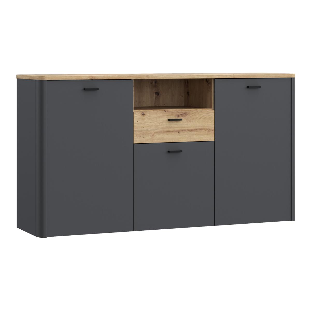 I really like this sideboard for its clean, versatile design and practical storage. The mix of dark grey and natural wood adds a contemporary edge that works especially well in modern, Scandinavian, or industrial interiors. It’s perfect for use in dining rooms, living rooms, or even a home office, providing ample space to keep clutter out of sight while offering surface space for styling. For a styled look, consider decorating the top with a few carefully selected accessories-such as vases, candles, or a statement lamp-while using the internal storage for essentials. Its neutral tones make it easy to integrate with a variety of colour schemes and furniture styles, making it a flexible choice for many homes.