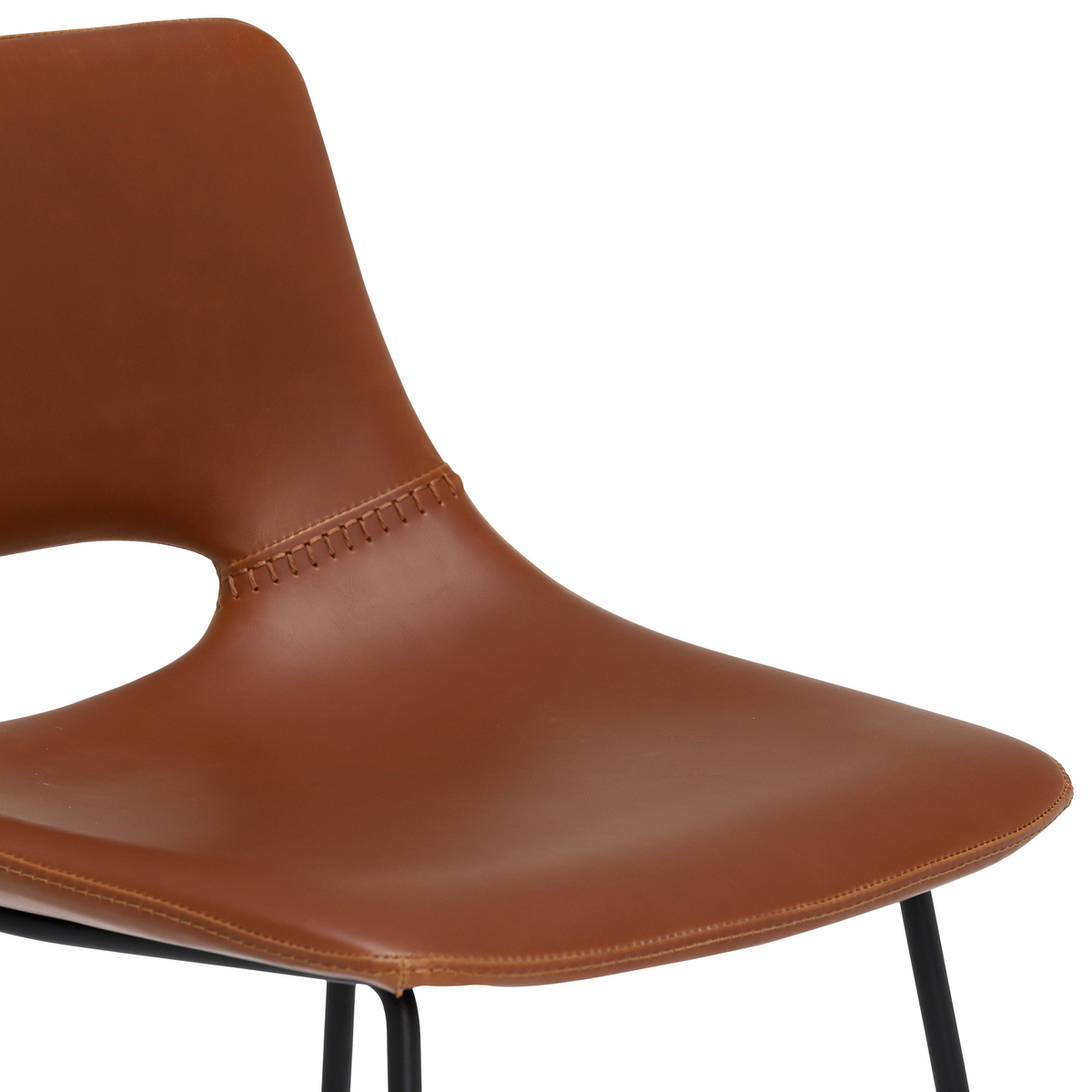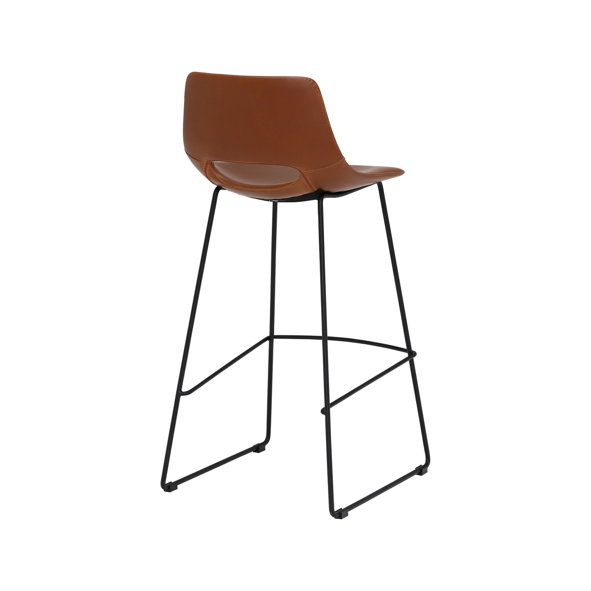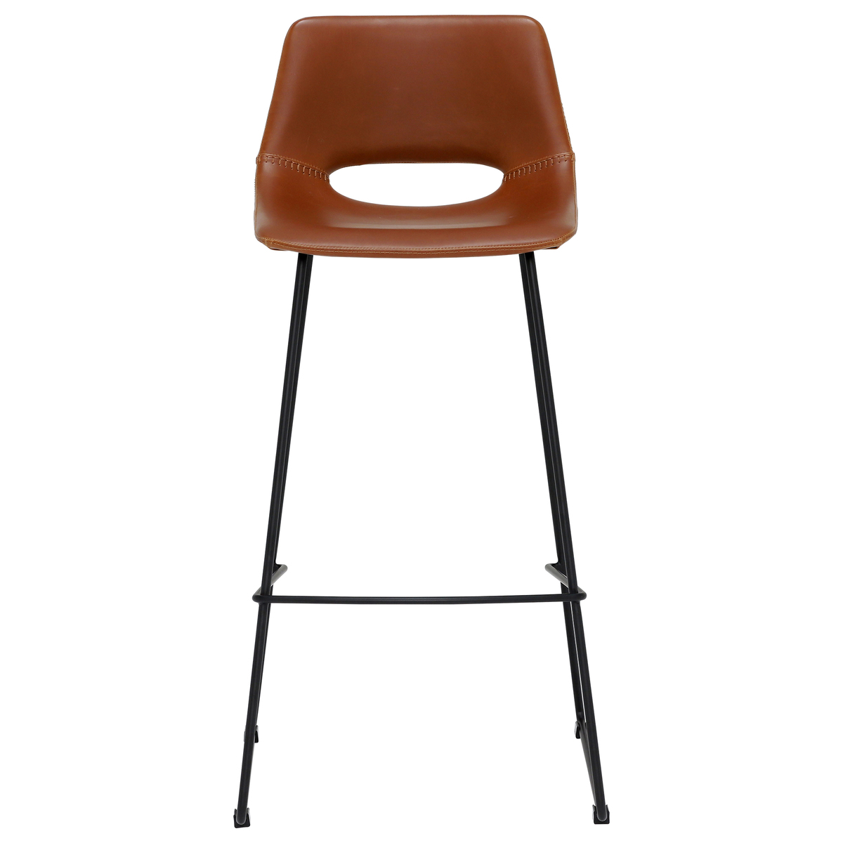 Perfect for home bars, breakfast bars, kitchen islands or counters, the Klee bar stool will see you through everyday life and evenings of entertaining. Its brown faux leather upholstery is versatile and timeless, with exposed stitching for an urban edge.;Set upon a sturdy yet slim metal frame in black, the bar stool maximises surrounding space and offers a handy footrest for added stability. Curvaceous and comfortable, the moulded seat is cushioned with foam, and features a low backrest that holds you snugly in place.